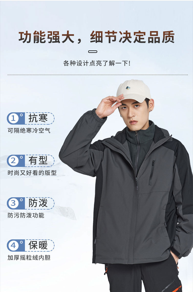 Индивидуальная уличная одежда для мужчин и женщин, зимний съемный ветрозащитный водонепроницаемый флисовый костюм «Три в одном»