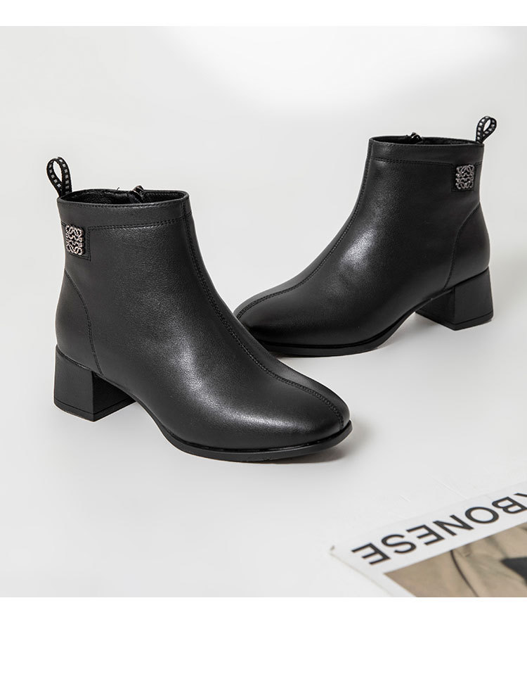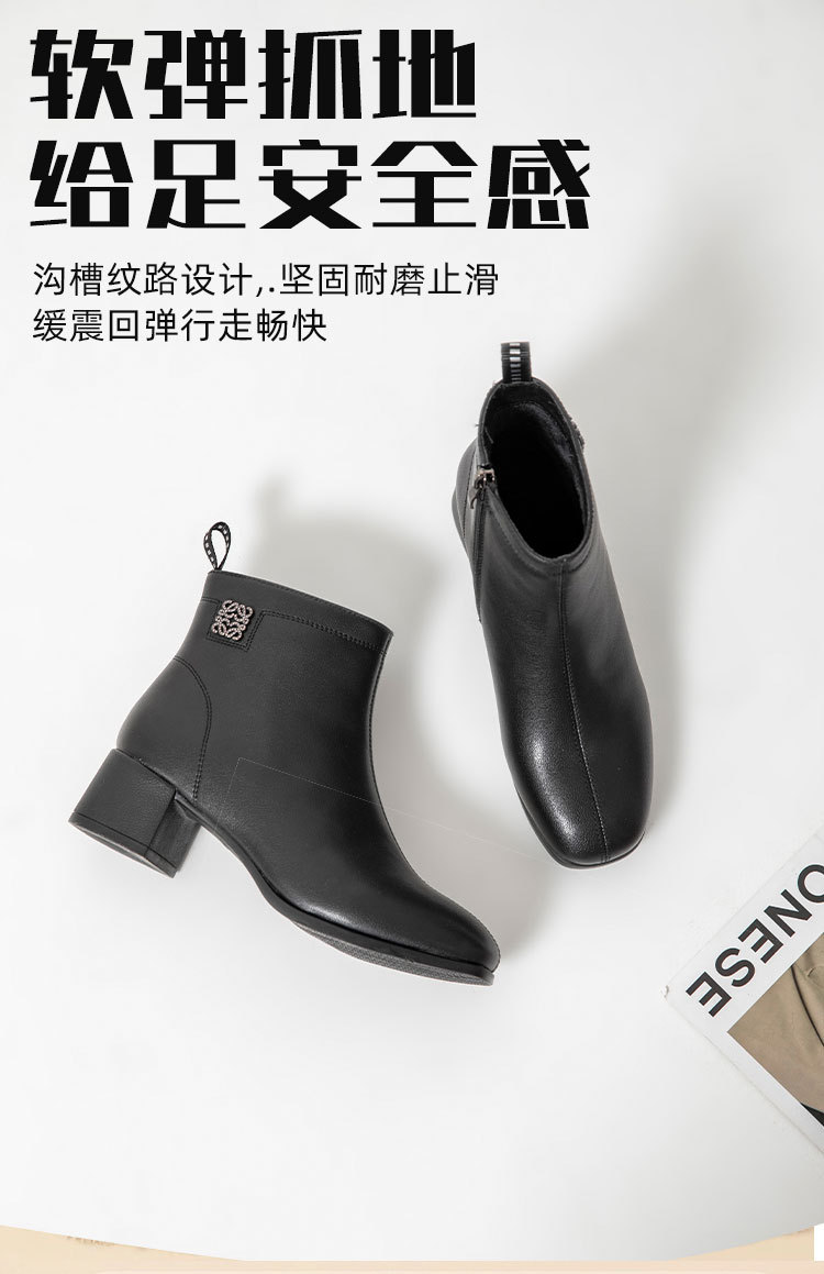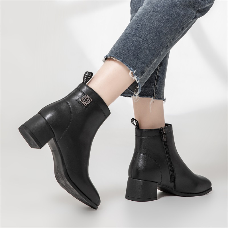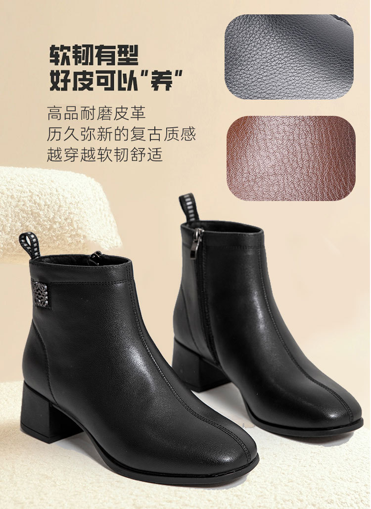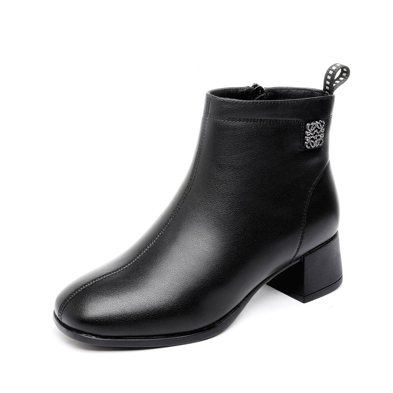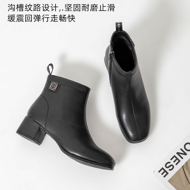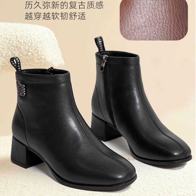 Новые ботильоны для мам, женская обувь, осенне-зимняя натуральная кожа, обувь для среднего возраста, каблук среднего возраста, теплая Женская Нескользящая кожаная обувь на флисовой подкладке