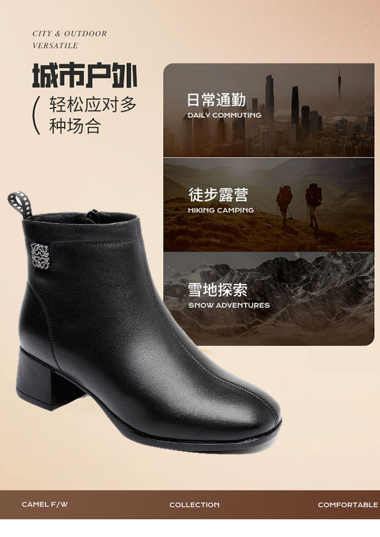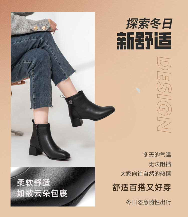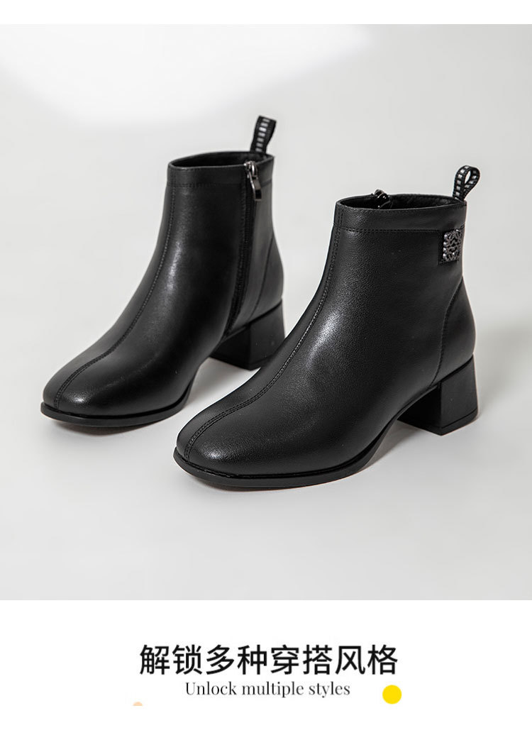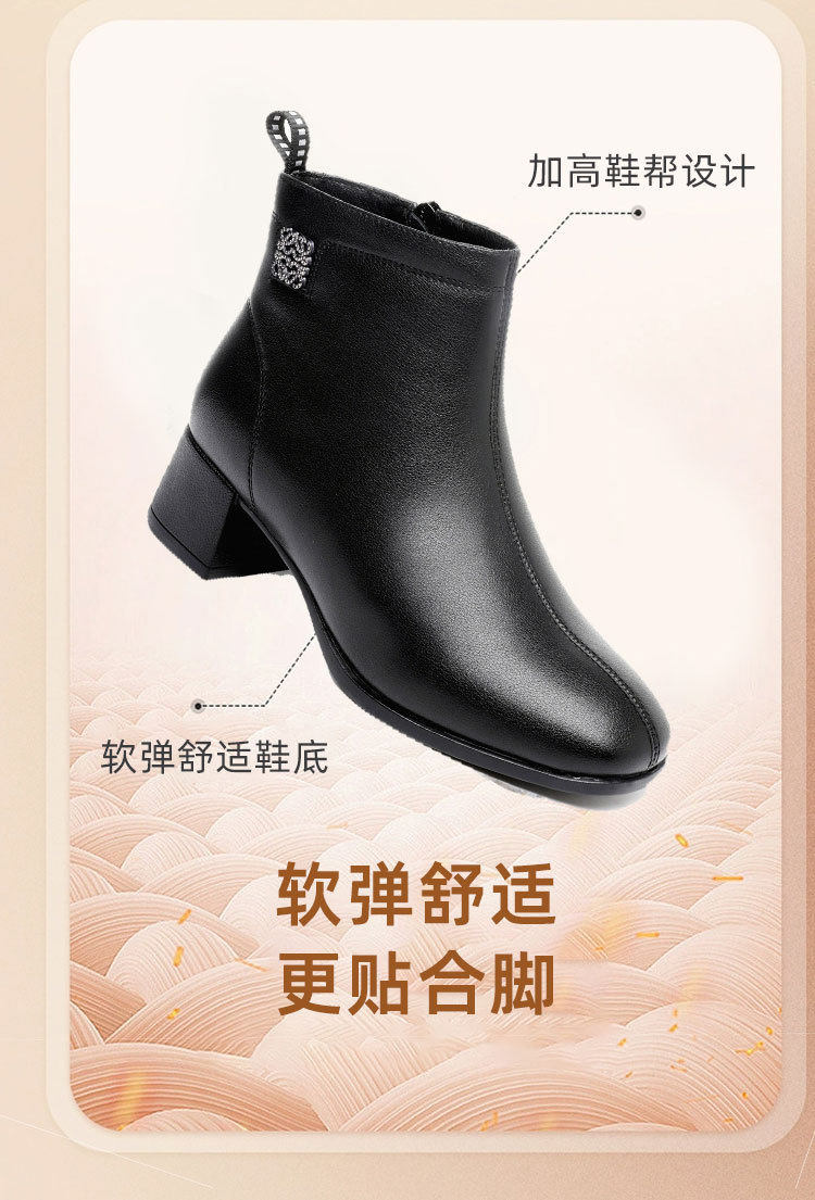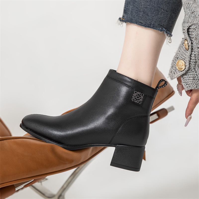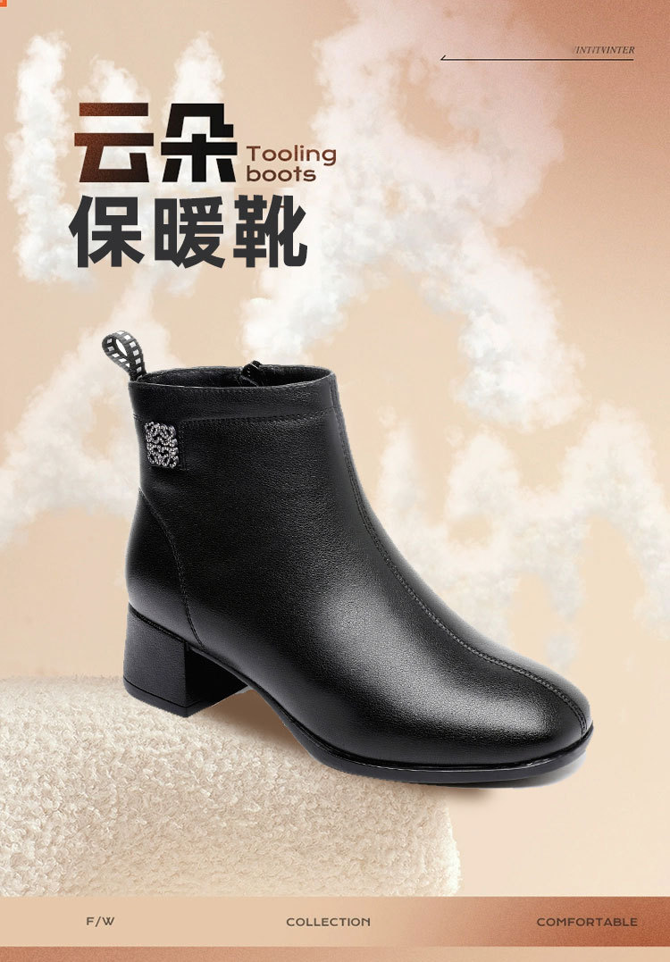 Новые ботильоны для мам, женская обувь, осенне-зимняя натуральная кожа, обувь для среднего возраста, каблук среднего возраста, теплая Женская Нескользящая кожаная обувь на флисовой подкладке