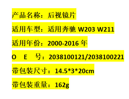Применимо к 00-06 Mercedes-Benz W203W211 зеркало заднего вида с объективом заднего вида 2038100121 оптом