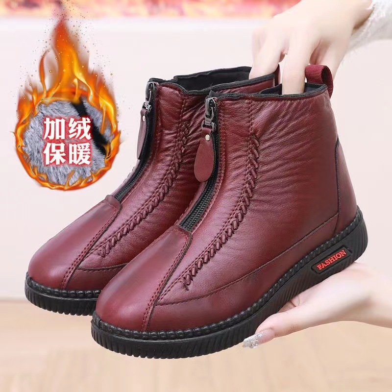 2023 Зимняя новая утолщенная Женская хлопчатобумажная обувь на флисовой подкладке, хлопковые сапоги на молнии для среднего и пожилого возраста, женская обувь для мамы, поколение волос