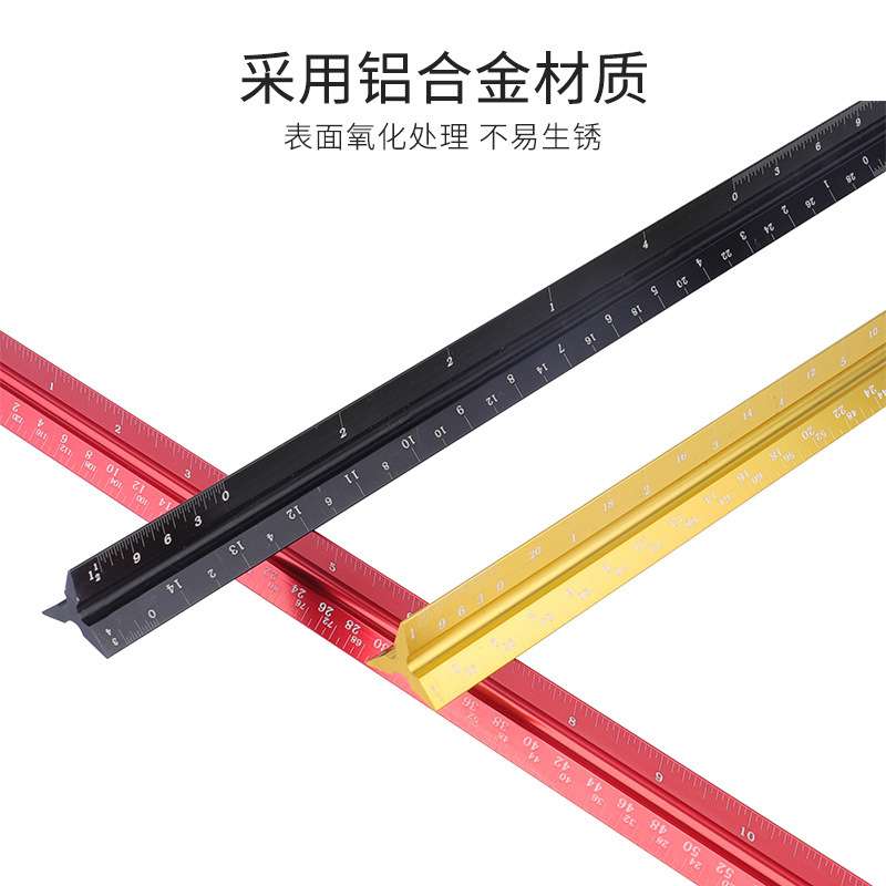 Алюминиевый сплав треугольная шкала здание шкала рисунок линейка многофункциональное здание утолщенная линейка Mitsubishi дизайн