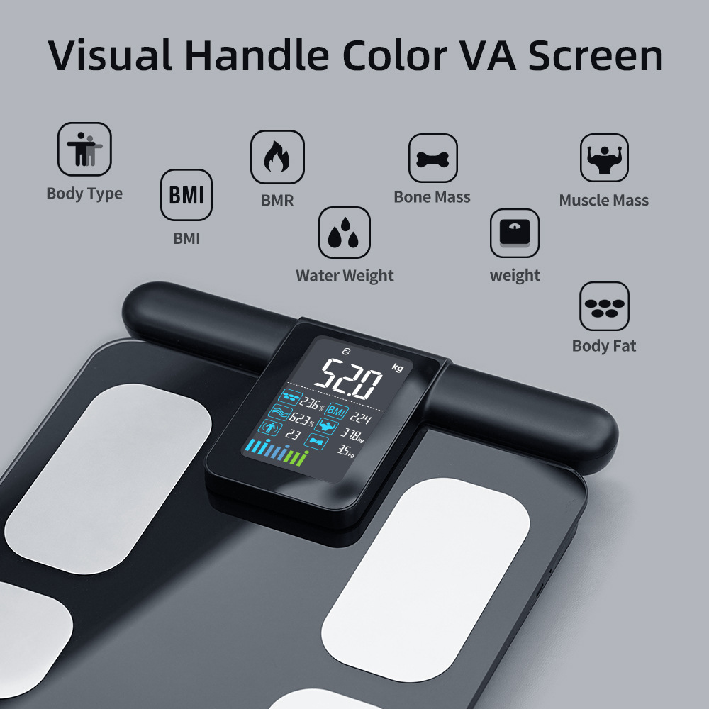 Трансграничные новые восьмиэлектродные весы для измерения жира в организме, умные цифровые весы для измерения жира, цветной экран, цифровые весы 180 кг, весы Bluetooth