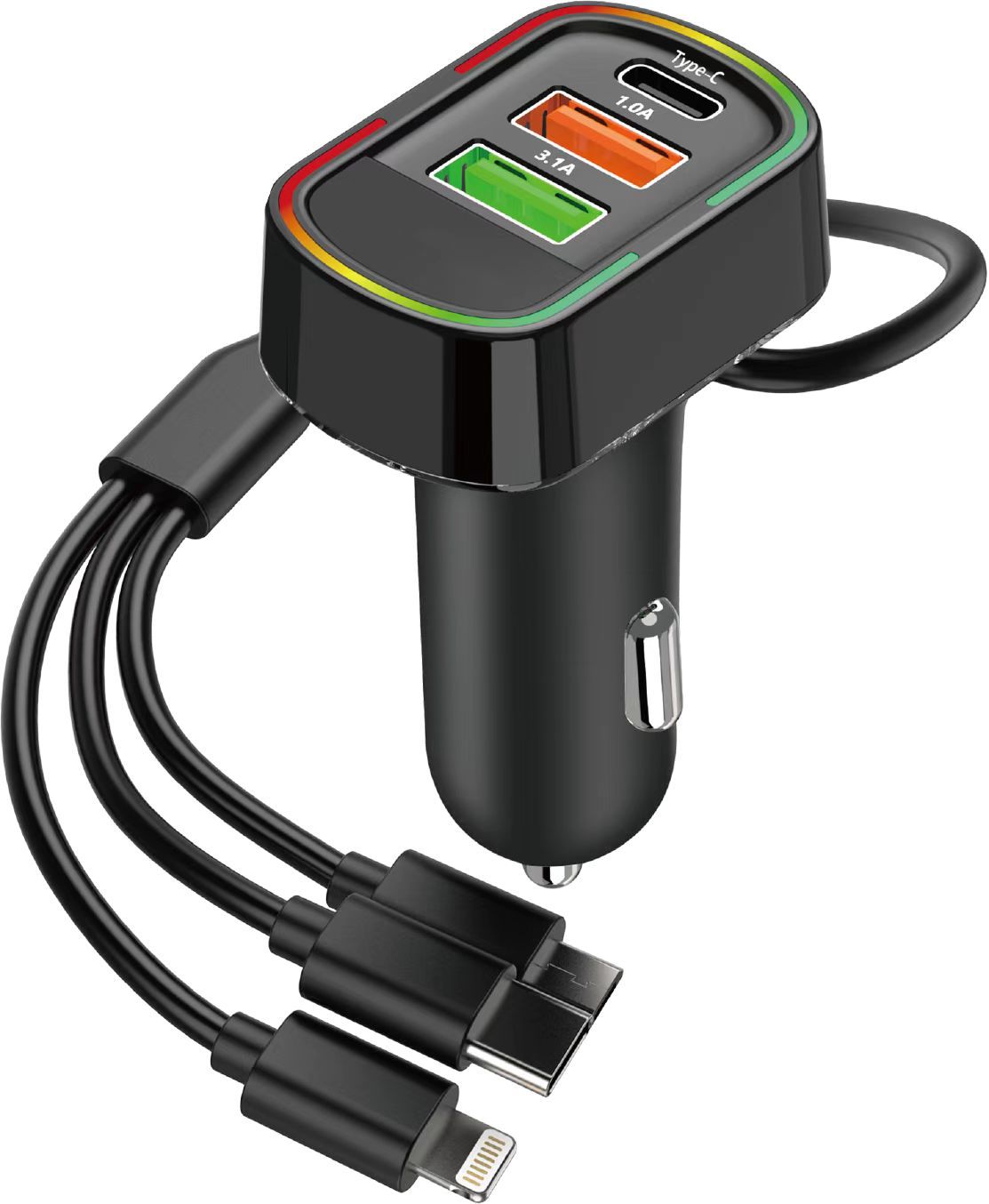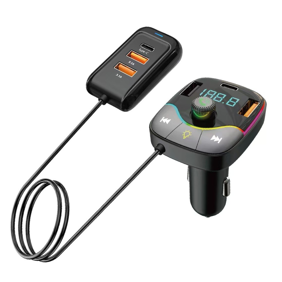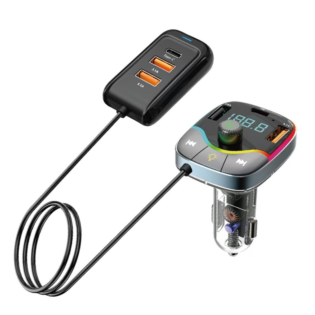 Автомобильный MP3/FM-ресивер G45G46 с Bluetooth, передатчиком, зарядным устройством и кабелем 3-в-1, светодиодной подсветкой (7 цветов)