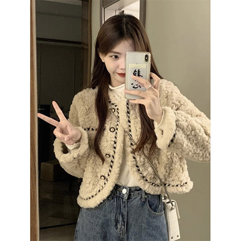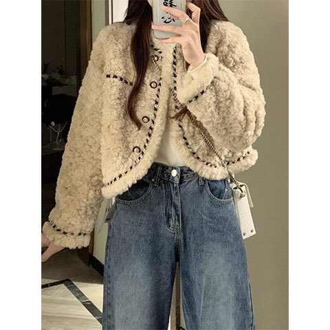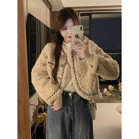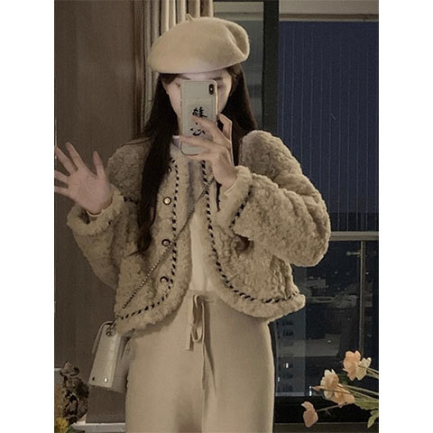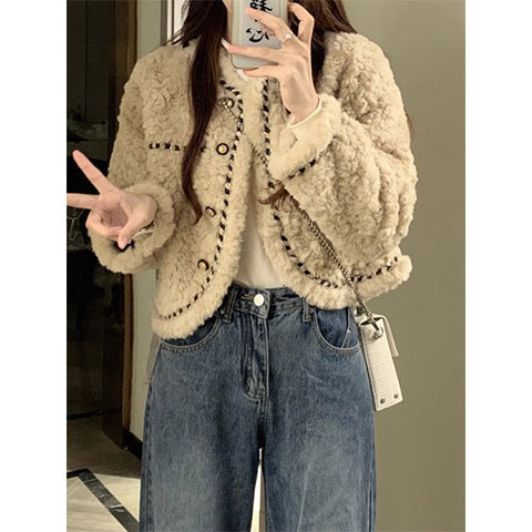 Женское шерстяное пальто из овечьей шерсти в стиле Chanel, утолщенный свободный универсальный короткий топ высокого класса, светского темперамента, для осени и зимы