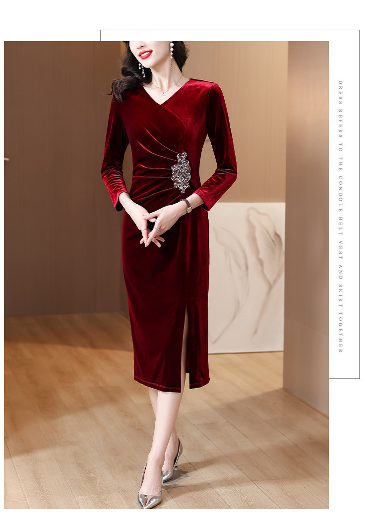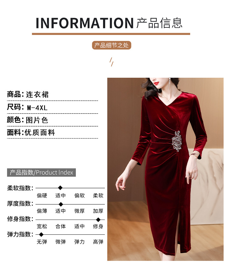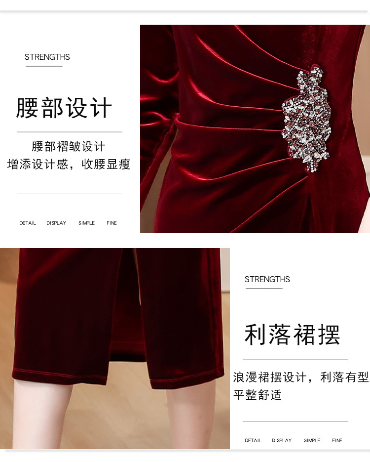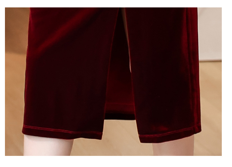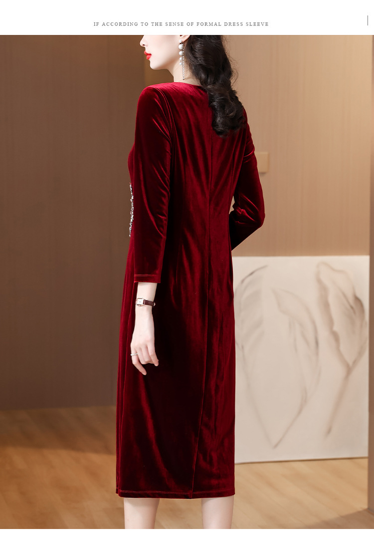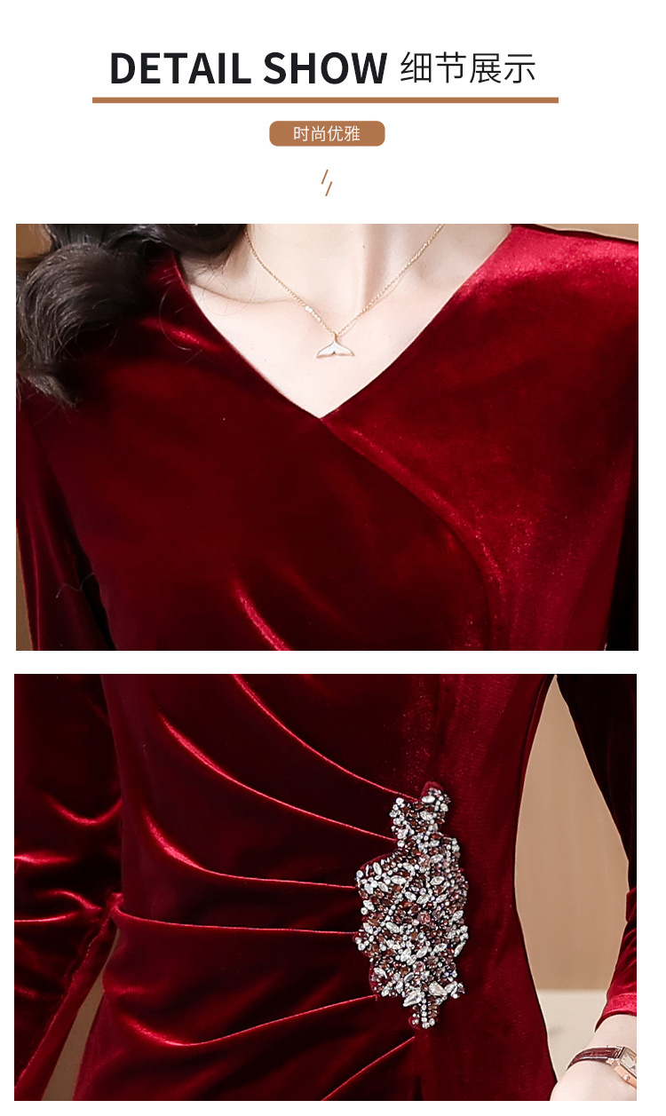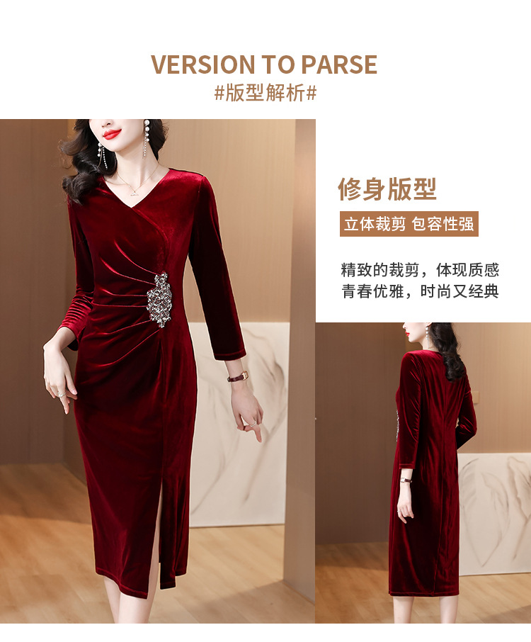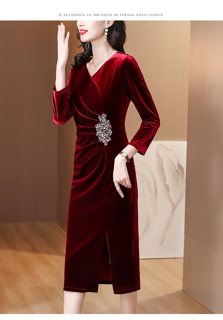 Ретро золотое бархатное платье женское 2023 осень-зима новый высокий темперамент складки