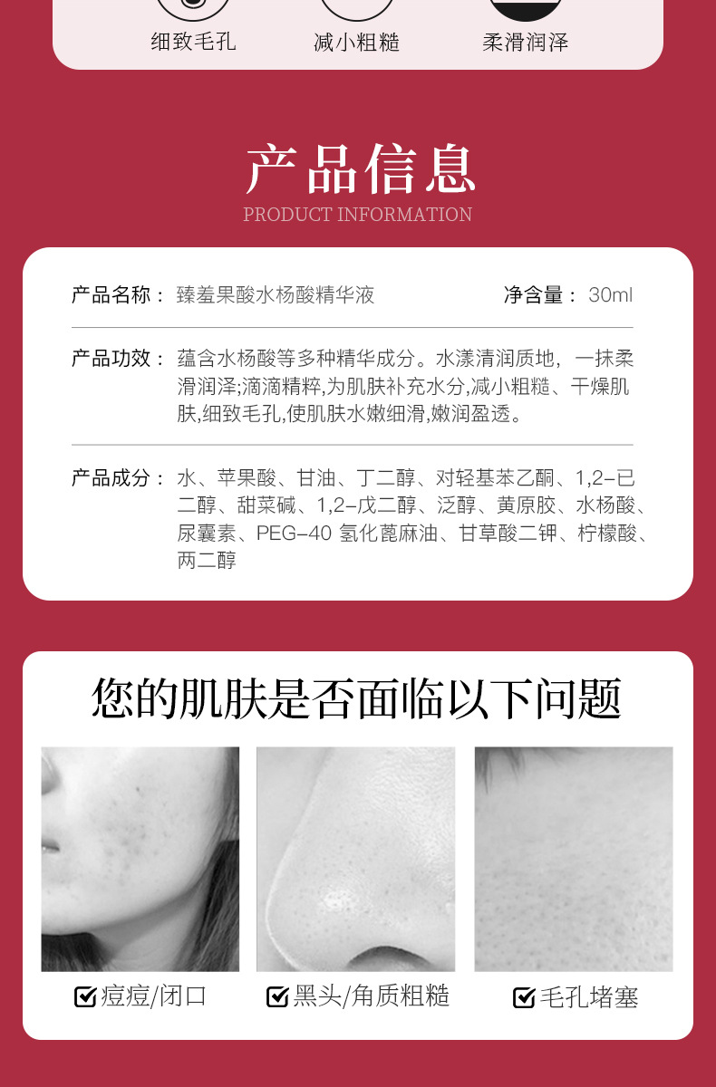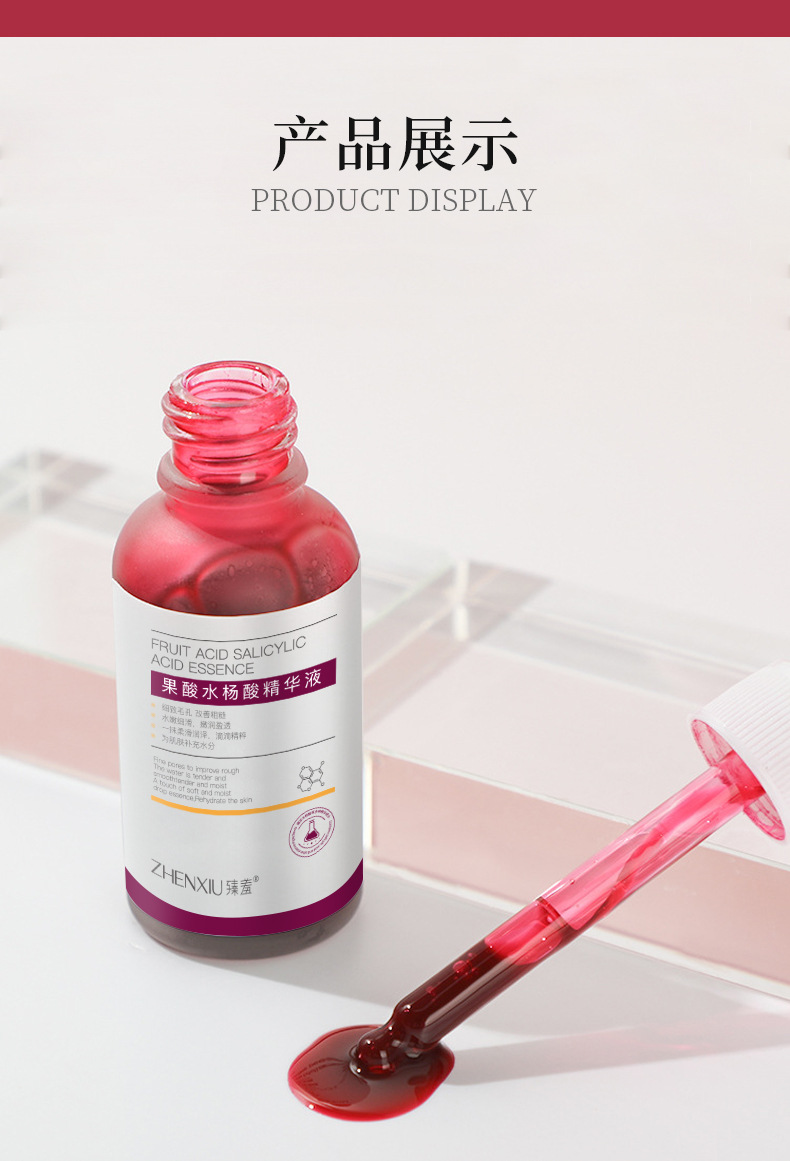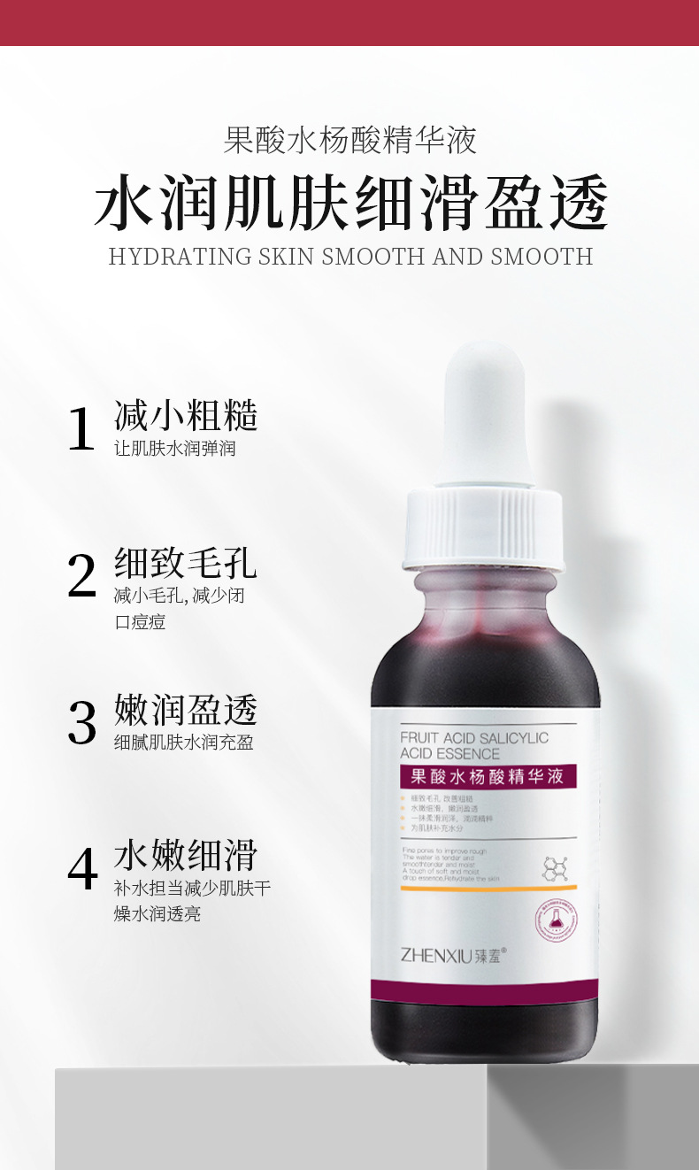 Эссенция с фруктовой кислотой Zhenxiu, салициловой кислотой, увлажняющая и увлажняющая, сужает поры и удаляет прыщи, замена жидкости для удаления прыщей с яблочной кислотой