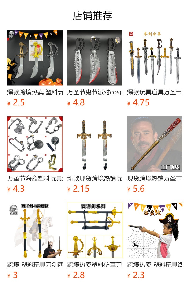 专业生产出口刀剑玩具20年,自主生产设计塑料仿真刀剑、木制玩具刀剑,有海盗系列、万圣节系列、中世纪骑士系列、日本武士刀系列、日本动漫系列、化妆舞会系列等刀、剑、盾牌相关产品,产品款式几百款,专业值得信赖。