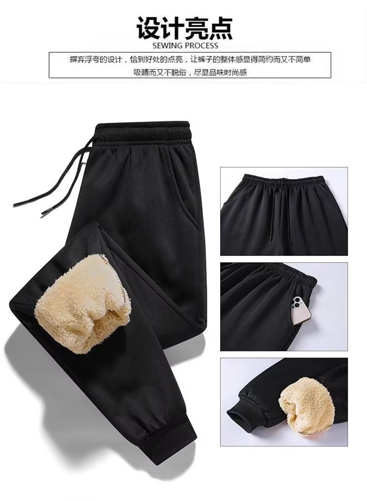 Плюшевые толстые черные брюки из кашемира для ног Мужские осенние и зимние мужские спортивные брюки теплые сплошные повседневные брюки