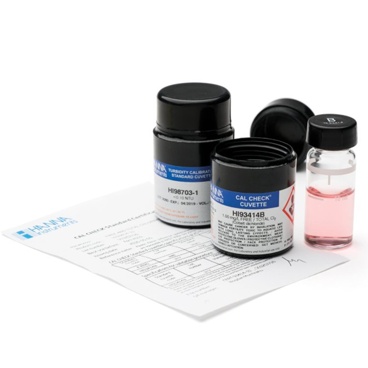主机,HI83414-11 专用浊度(EPA)标准、氯标定组(浊度标值@25°C:≤ 0.1、15、100、750、2000 NTU,专用氯NIST测量曲线标定@25°C:1.0),HI731333N 专用玻璃比色皿套装,HI93703-58 玻璃比色杯润滑剂,中英文使用说明书【温馨提示:建议订购HI93703-50比色皿清洁液和HI731318玻璃比色皿清洁布,用于玻璃比色皿清洁修复,确保测量精度和读数准确度】
