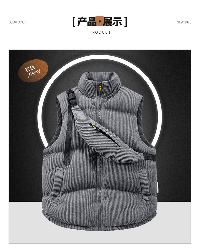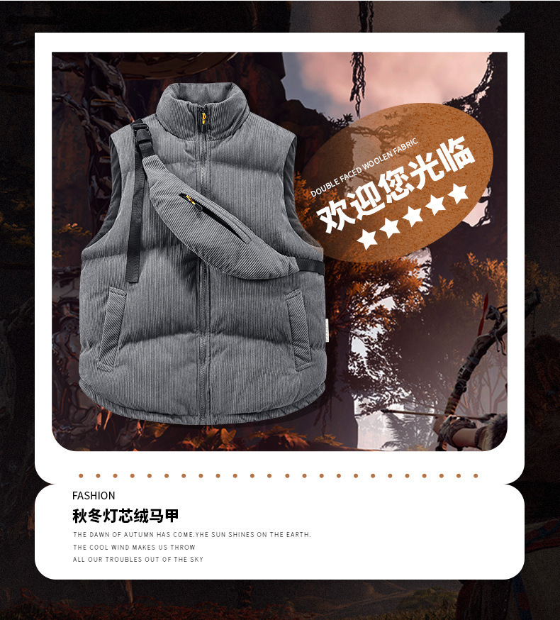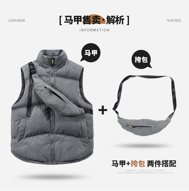 Новая хлопковая жилетка с низкой ценой, популярная в осенне-зимнем сезоне 2025 года, из вельвета, с воротником-стойкой, модная, с сумкой через плечо, поясная куртка-жилет.