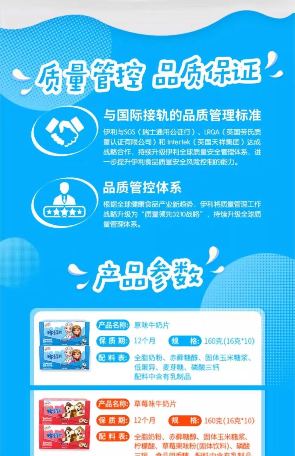 本公司宗旨.主打日期新鲜.正品保障 及时解决消费者售后问题.热心解答.以服务为根本.以诚信求生存.伊利奶片盒装,1箱12盒,1盒=160g(内含10板*16g)欢迎实体商超批发客户合作