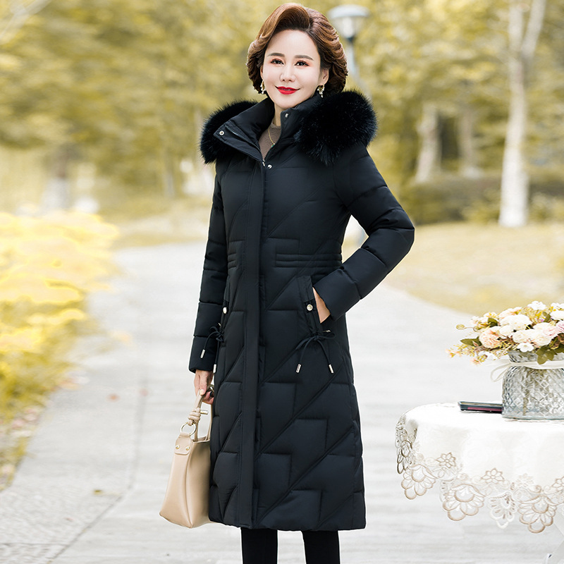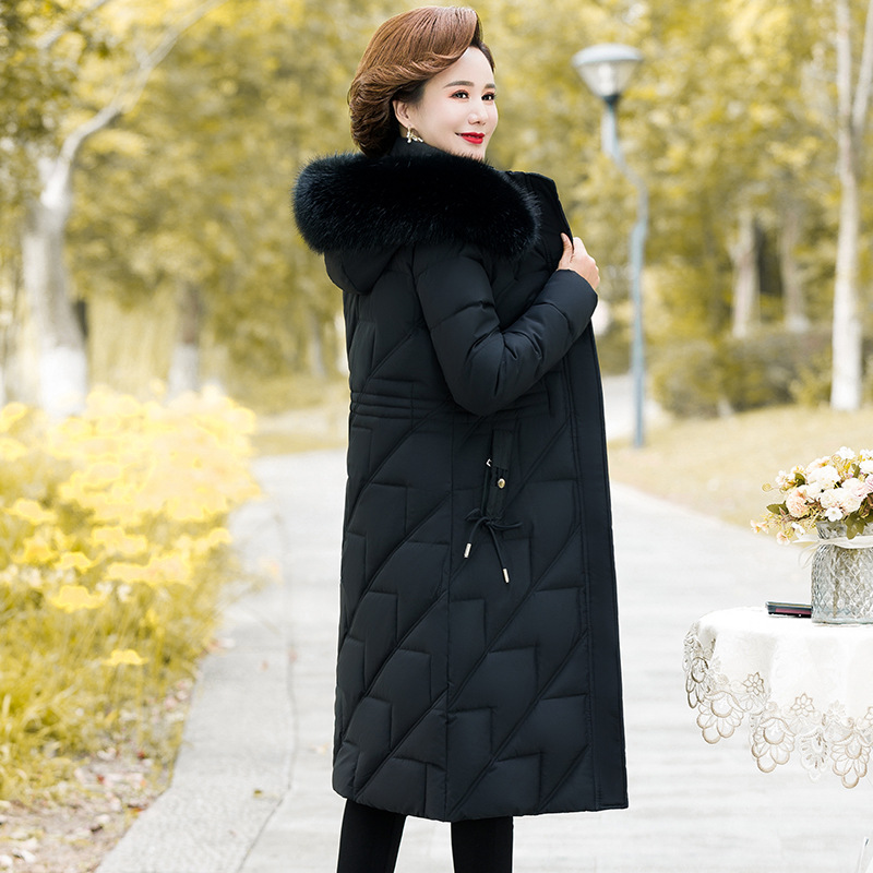 Длинное пальто выше колена для среднего и пожилого возраста с хлопковой подкладкой, женское утолщенное зимнее пуховое пальто средней длины для матери с хлопковой подкладкой, куртка с хлопковой подкладкой больших размеров