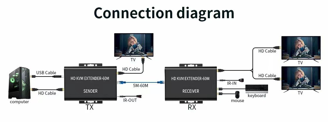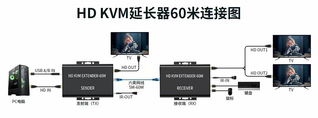 HDMI к сетевому кабелю удлинитель KVM высокий список сетевой кабель 60M 1080P к сетевому передатчику RJ45 60m
