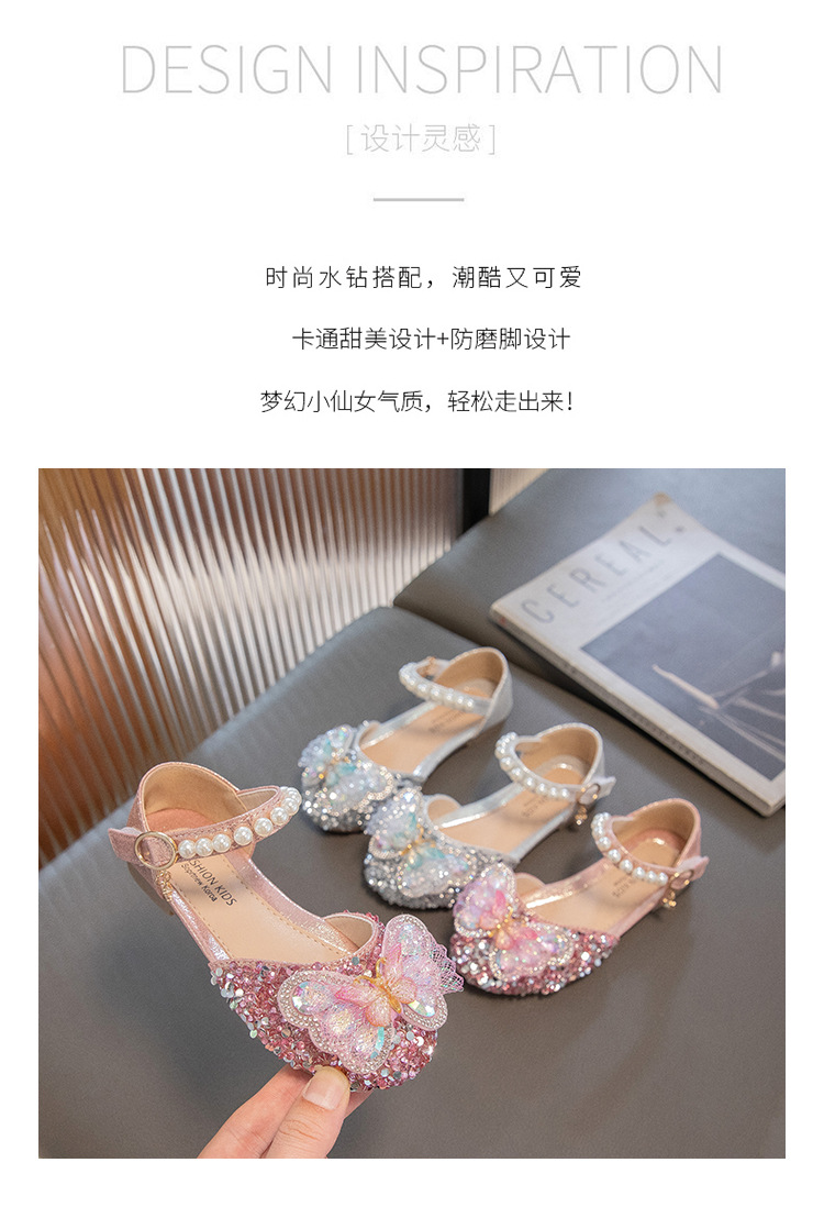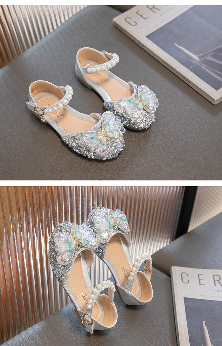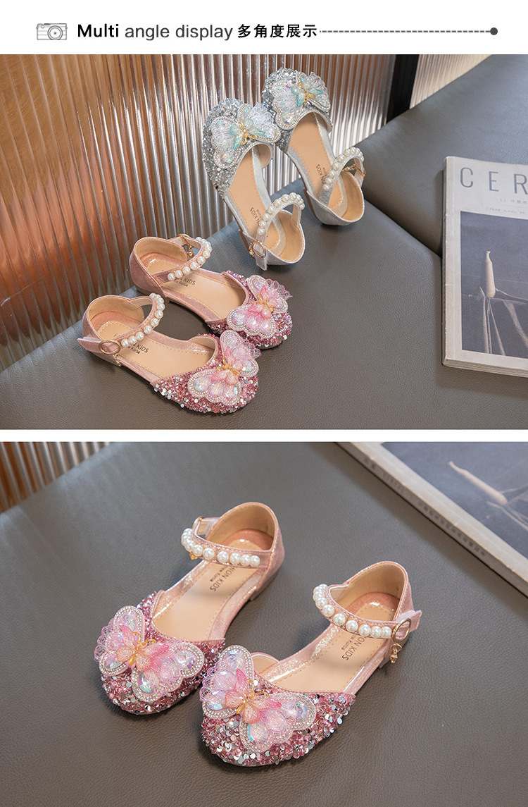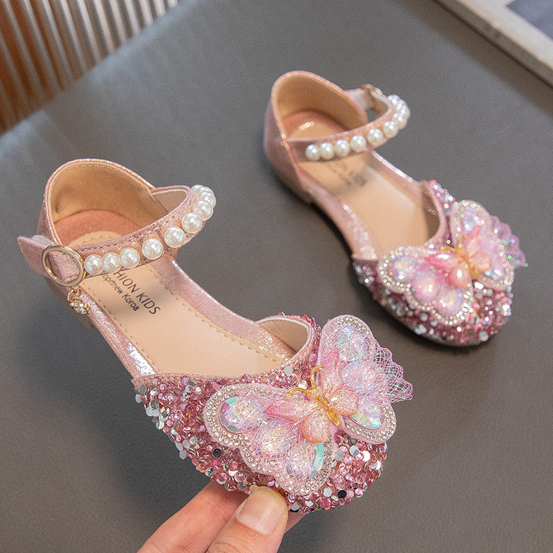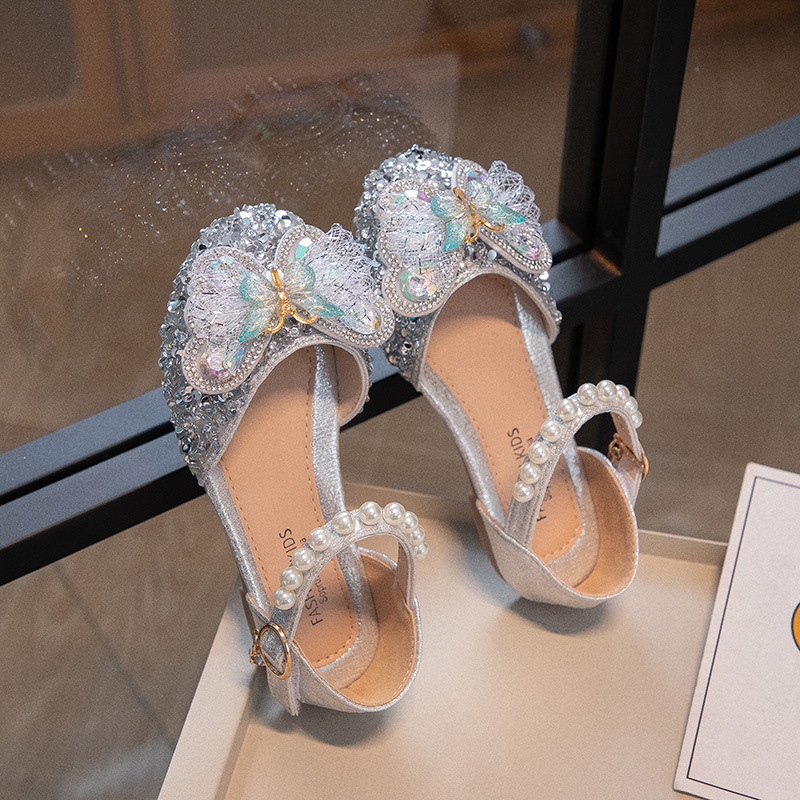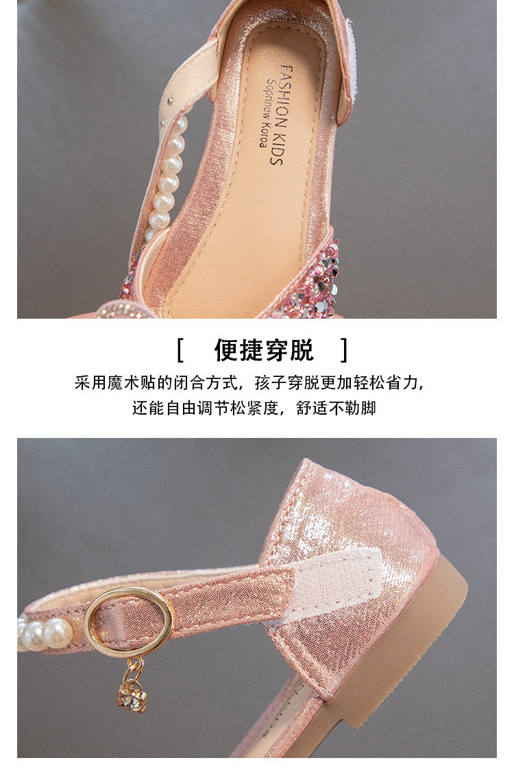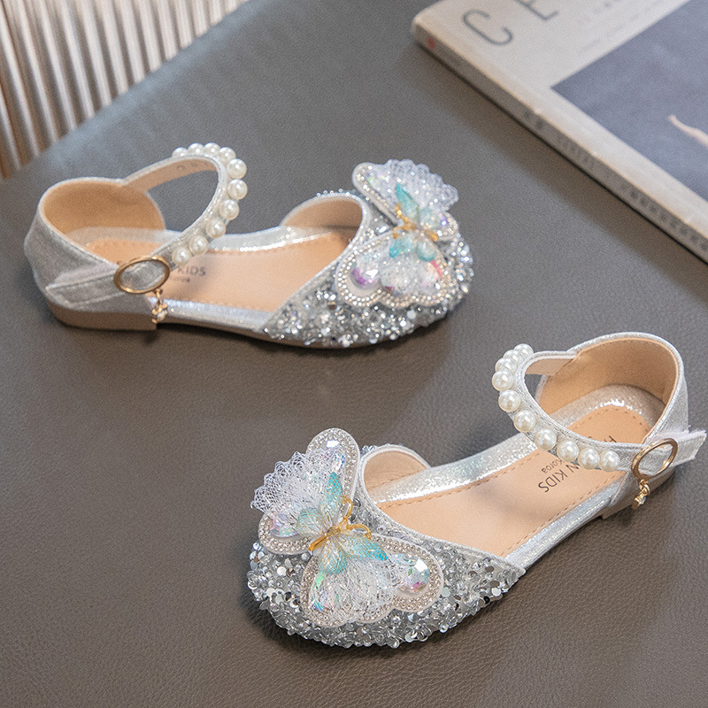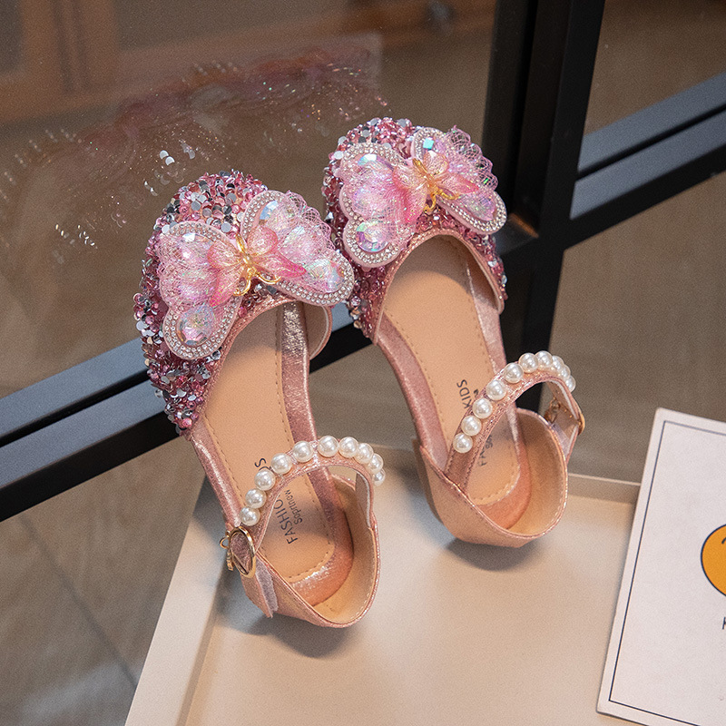 2024 весенне-летние новые туфли принцессы для девочек, корейский стиль, сандалии Baotou со стразами и бантом для девочек, маленькие кожаные туфли на мягкой подошве