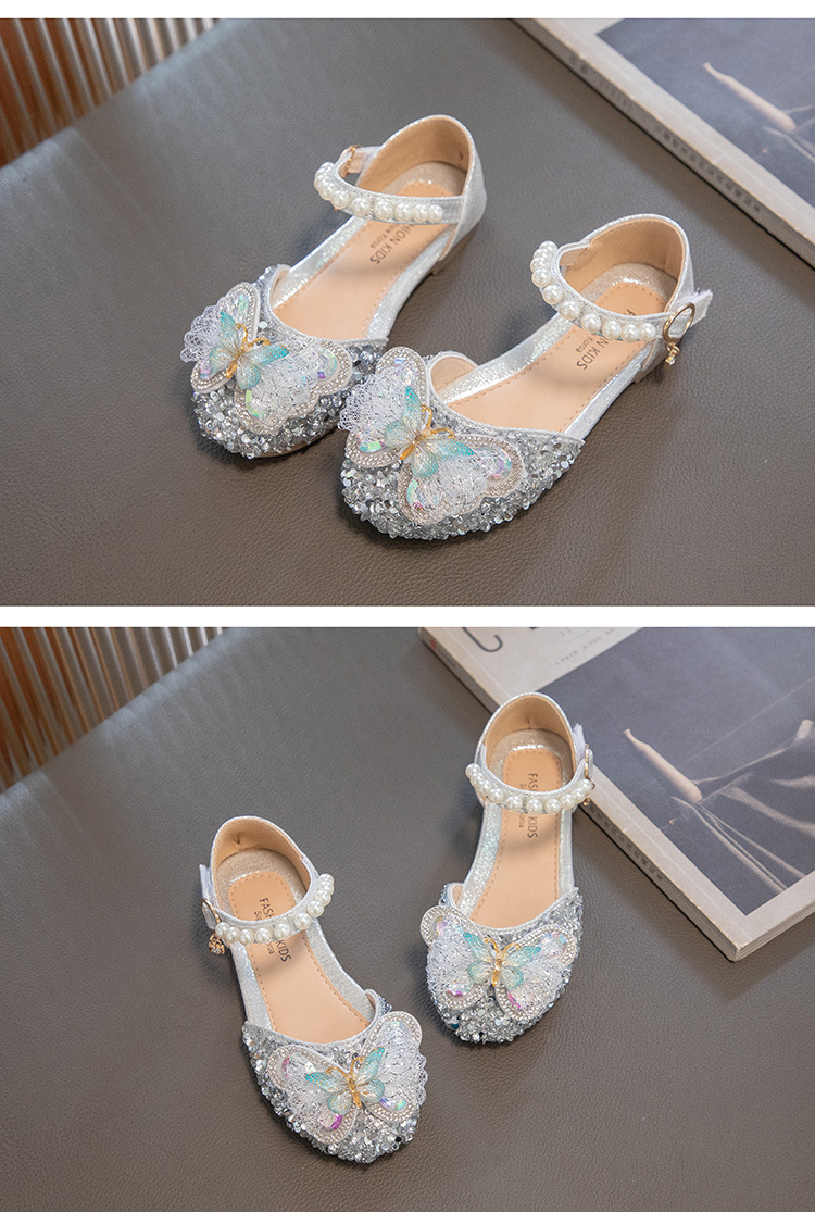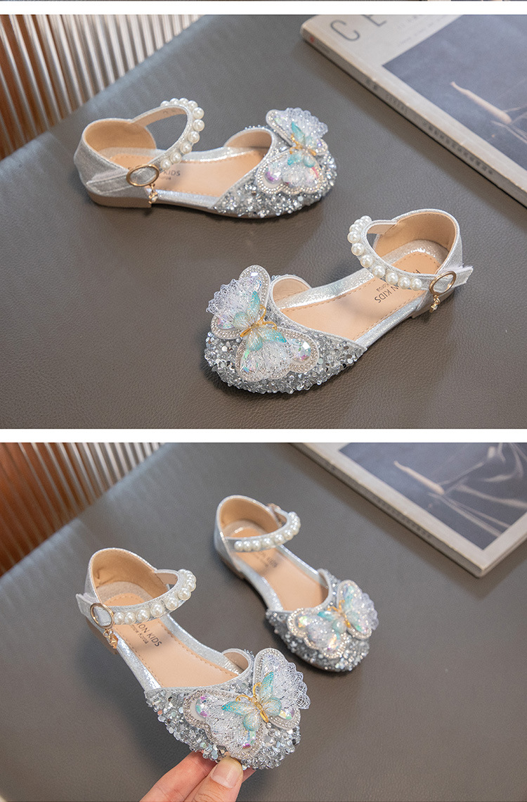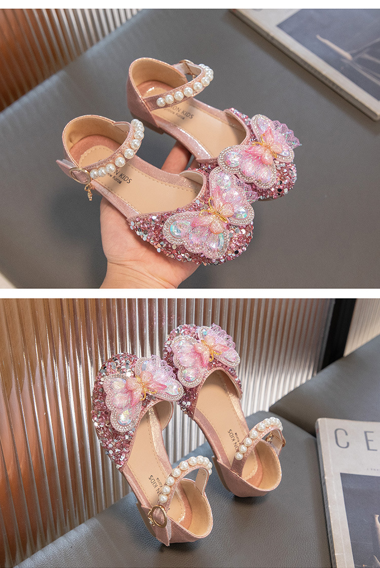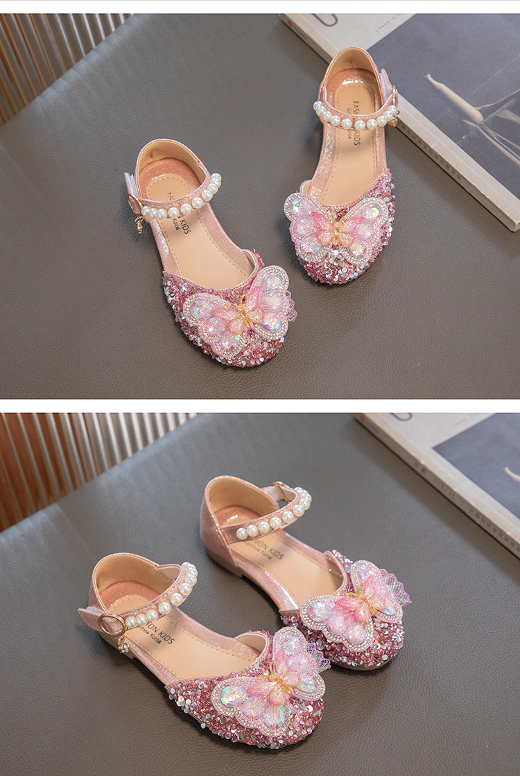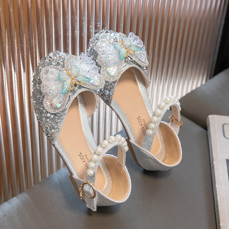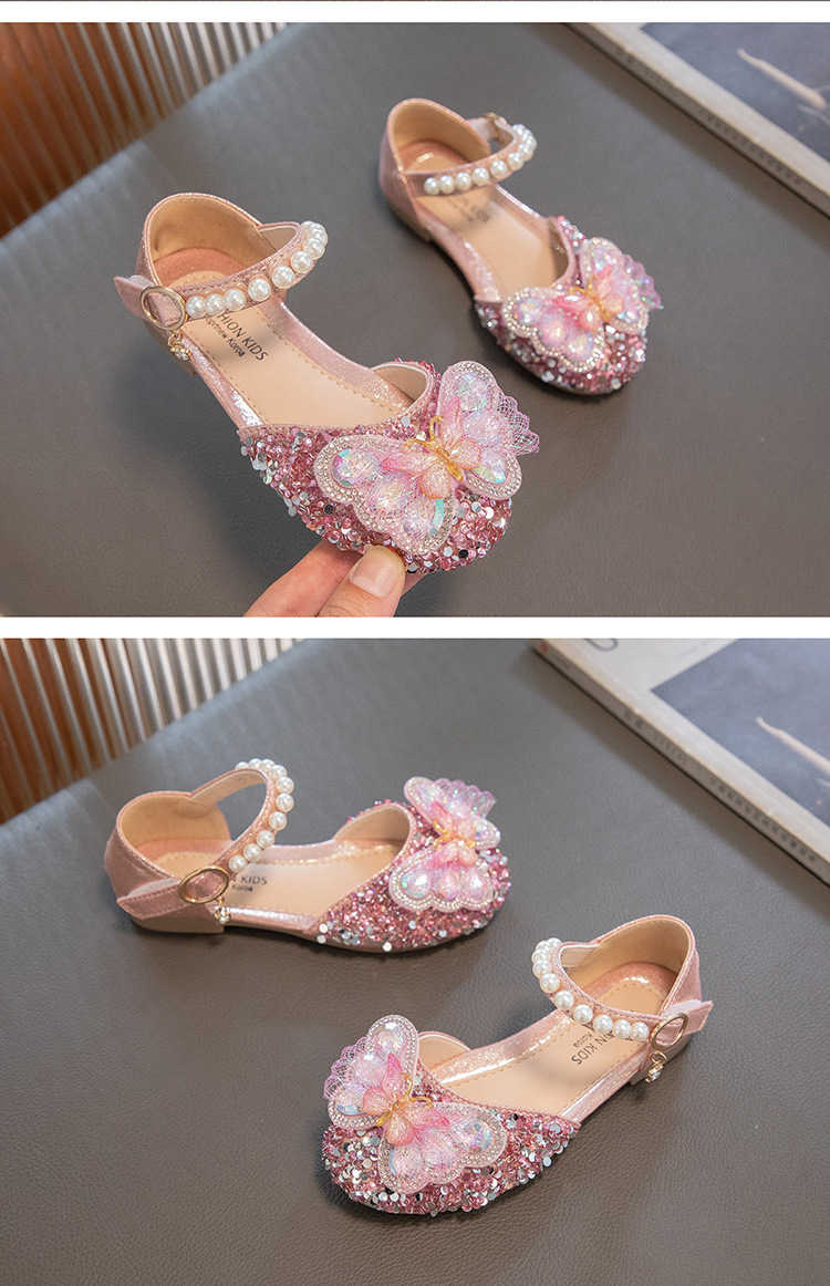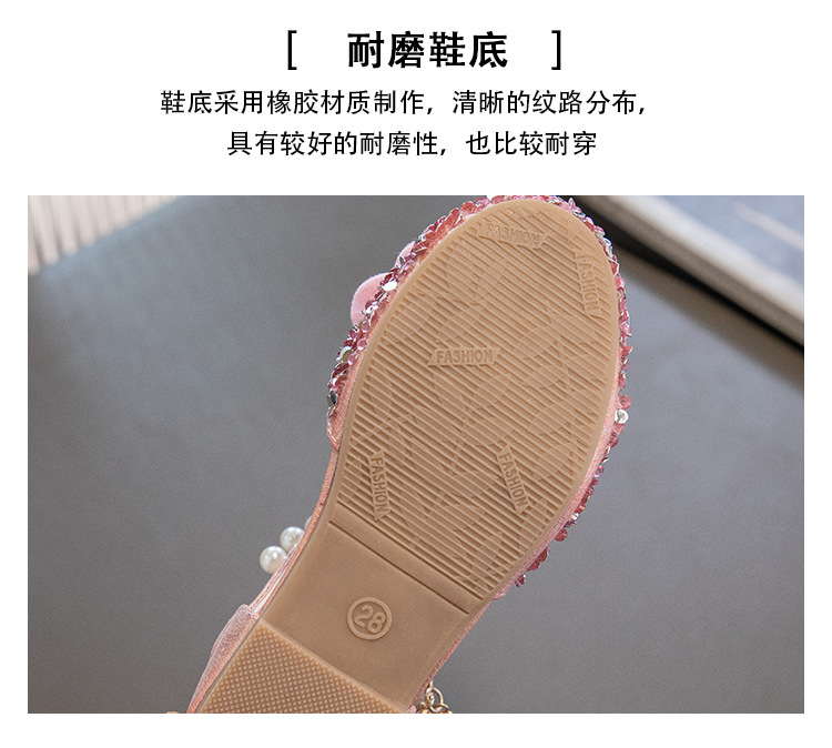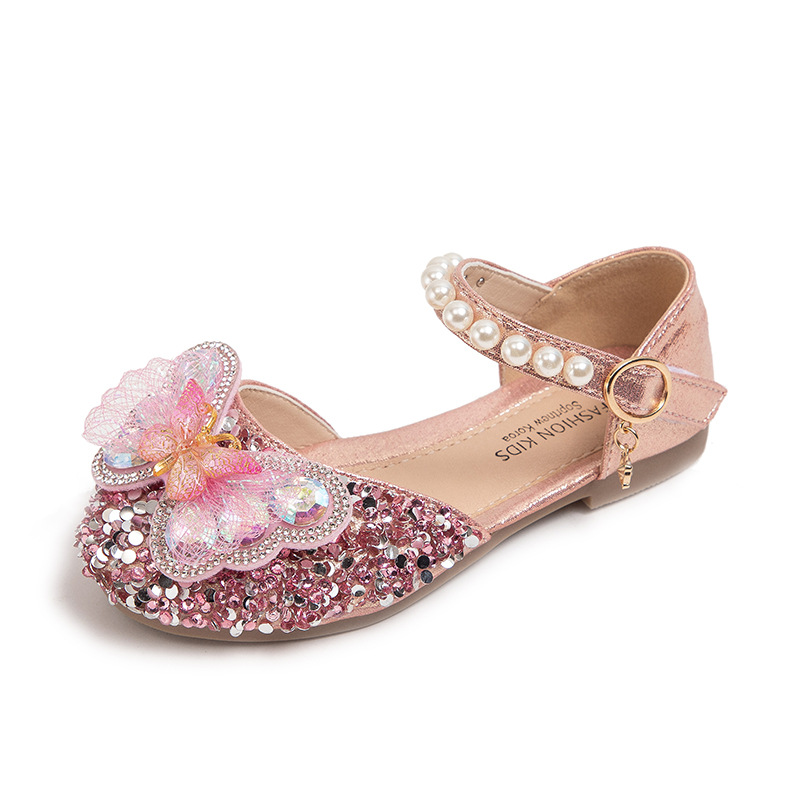 2024 весенне-летние новые туфли принцессы для девочек, корейский стиль, сандалии Baotou со стразами и бантом для девочек, маленькие кожаные туфли на мягкой подошве