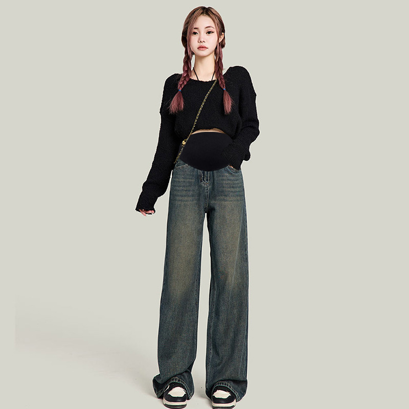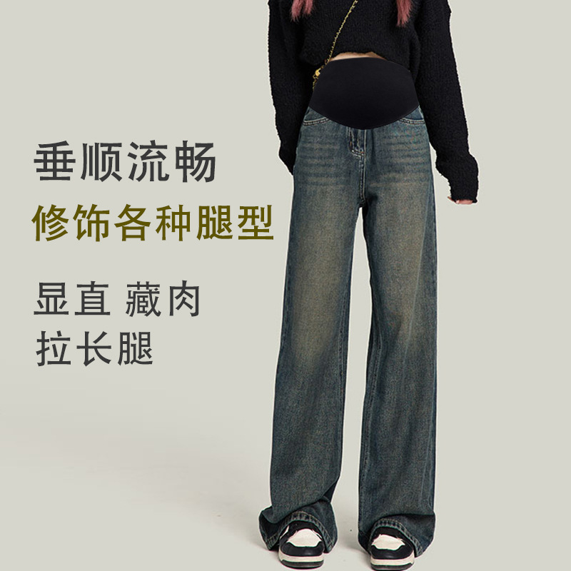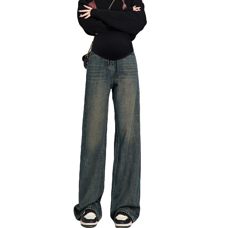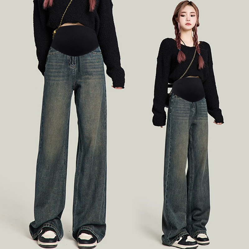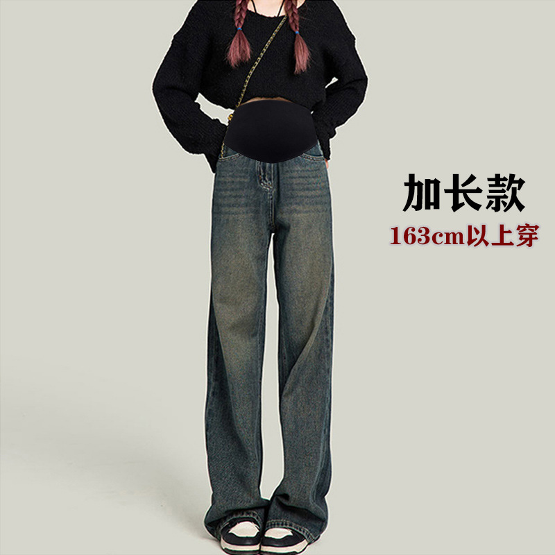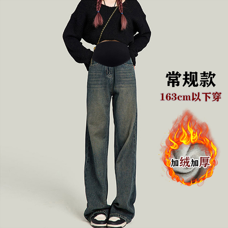 Брюки с широкими штанинами для беременных, осенне-зимняя одежда, свободные на флисовой подкладке, серые прямые повседневные джинсовые швабры, весна и осень