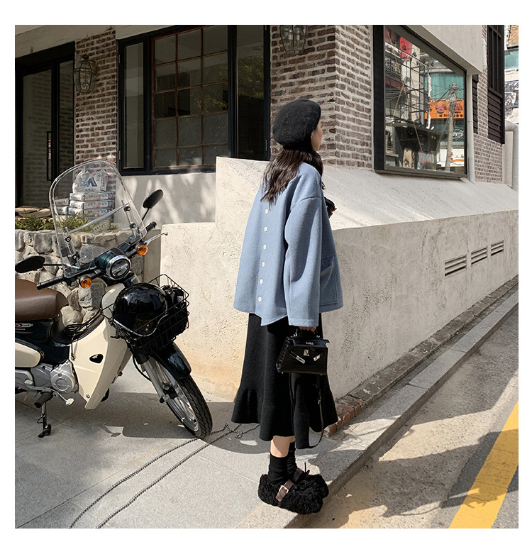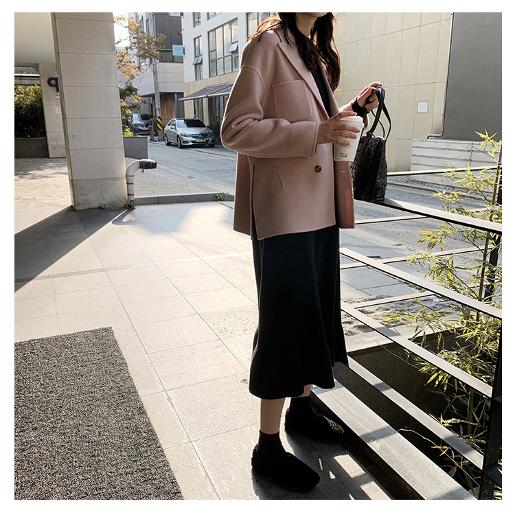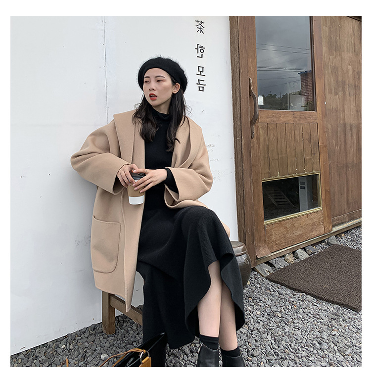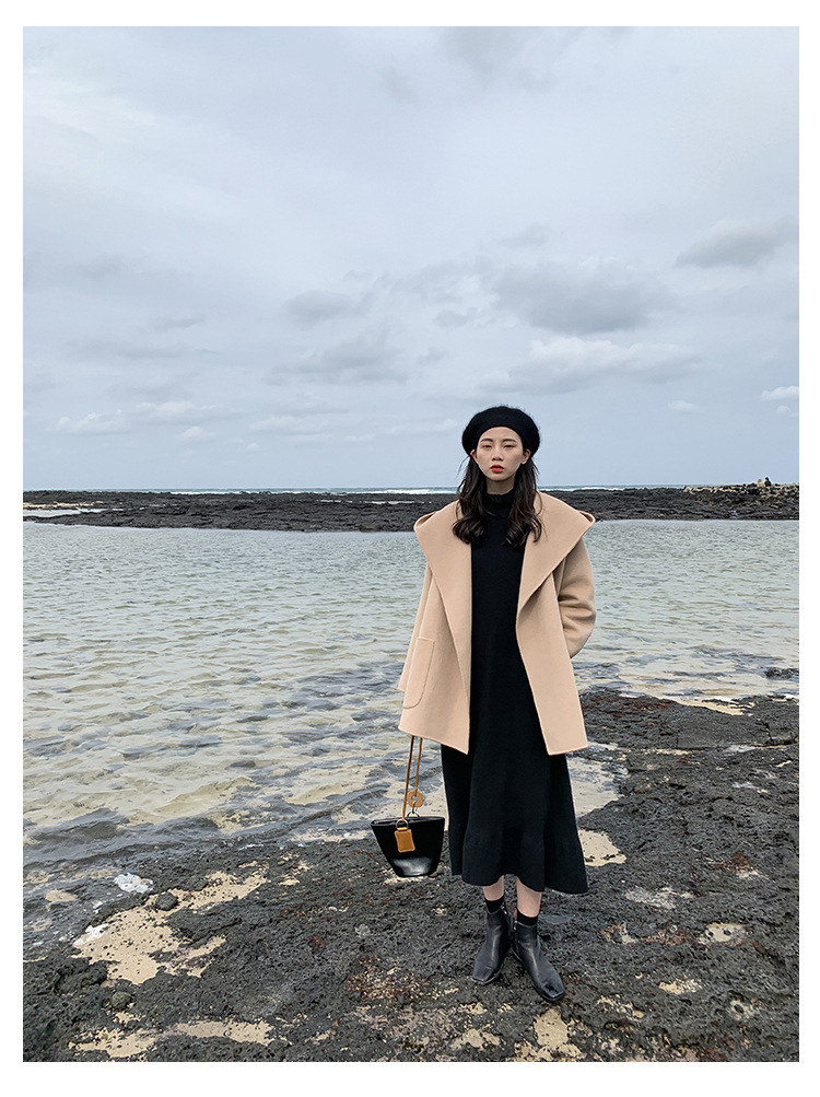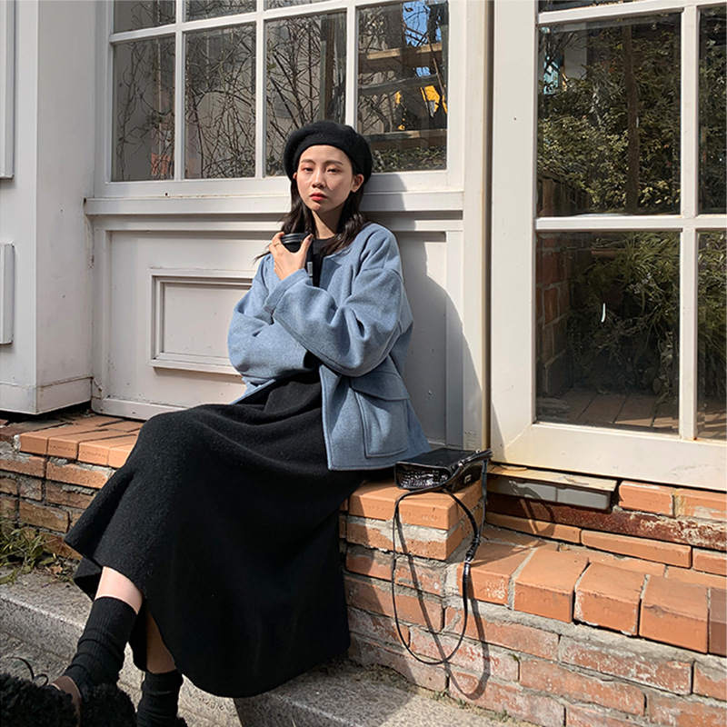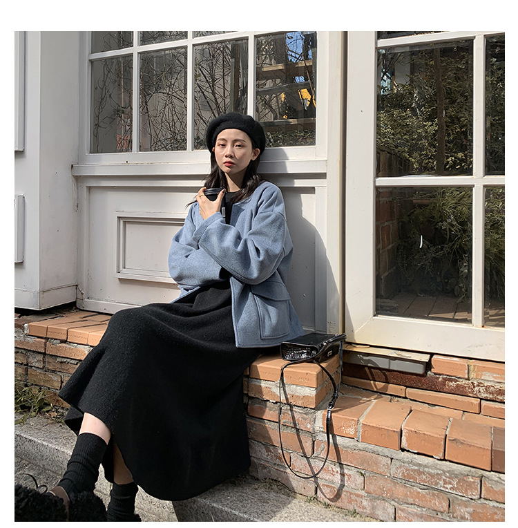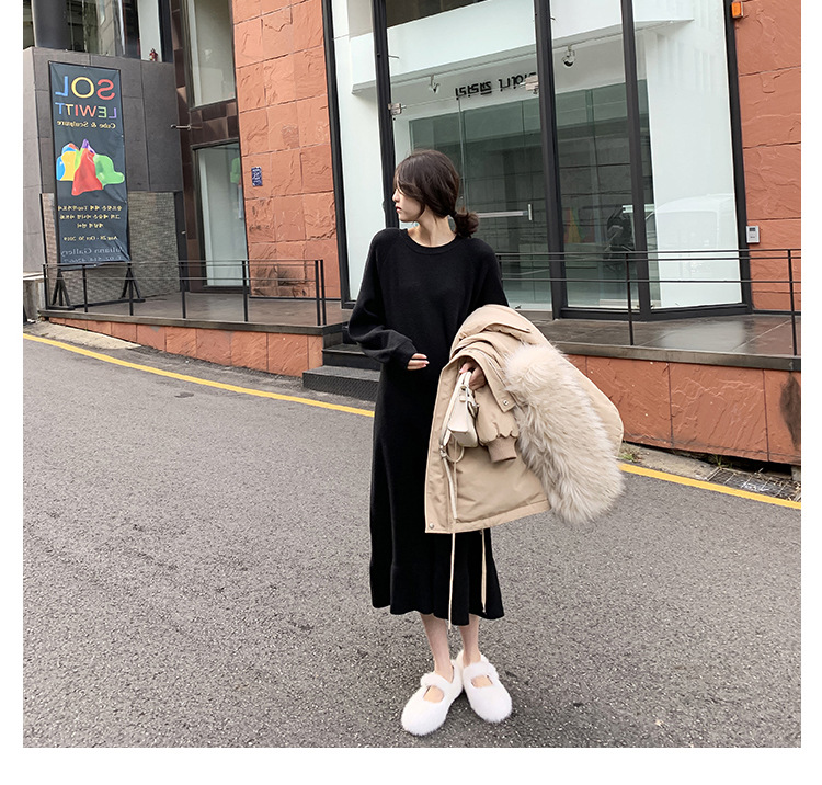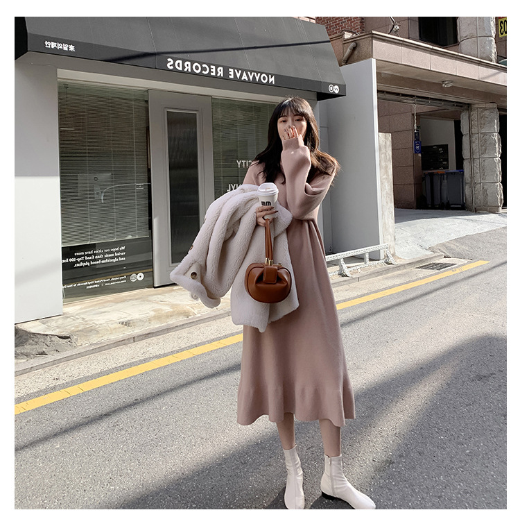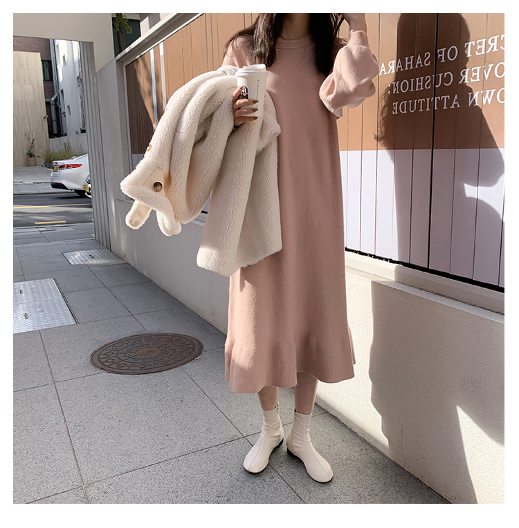 200 Jin Свободный свитер до колена большого размера, осенне-зимнее платье с оборками, юбка-годе, базовое вязаное платье, модное