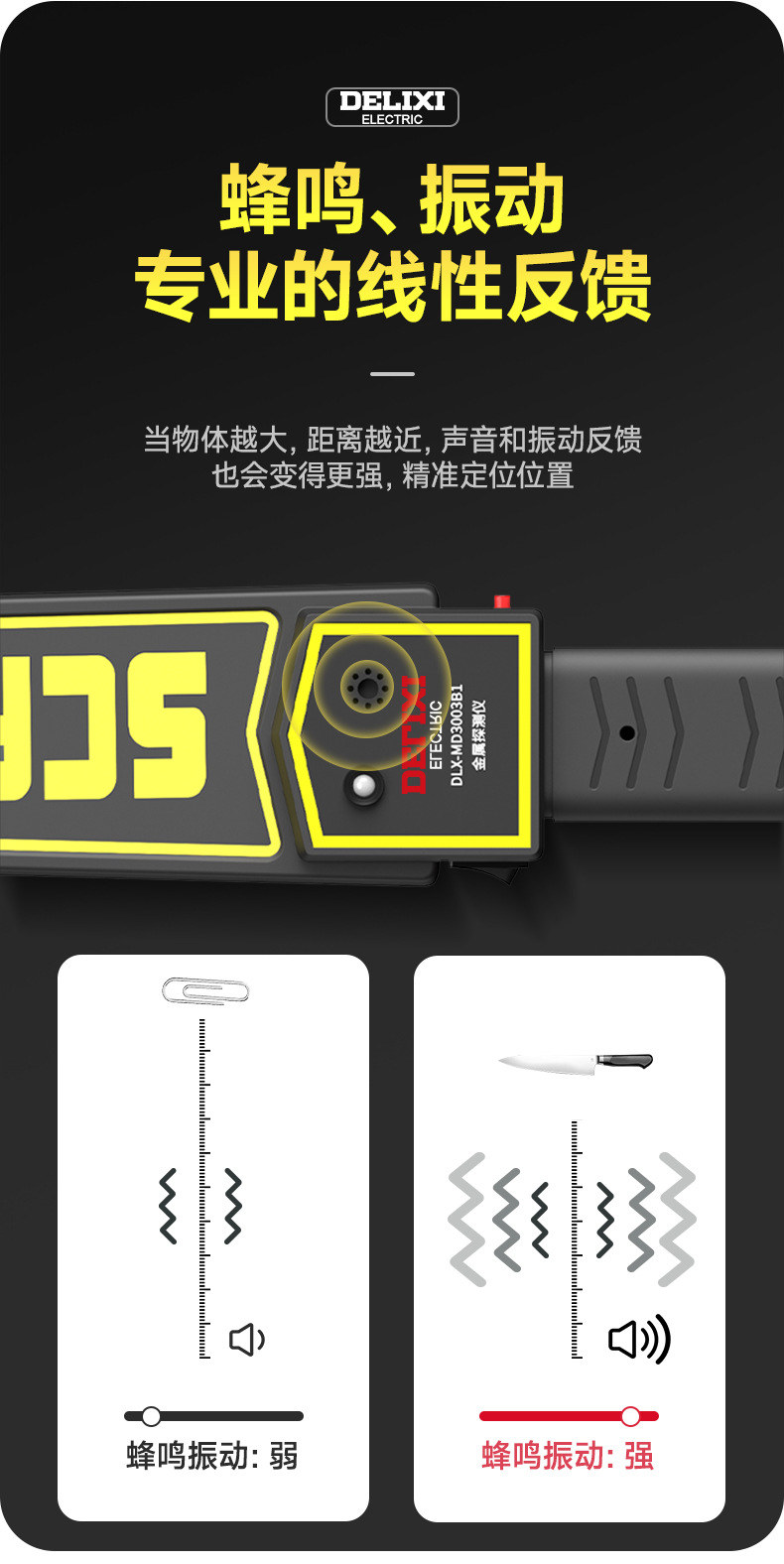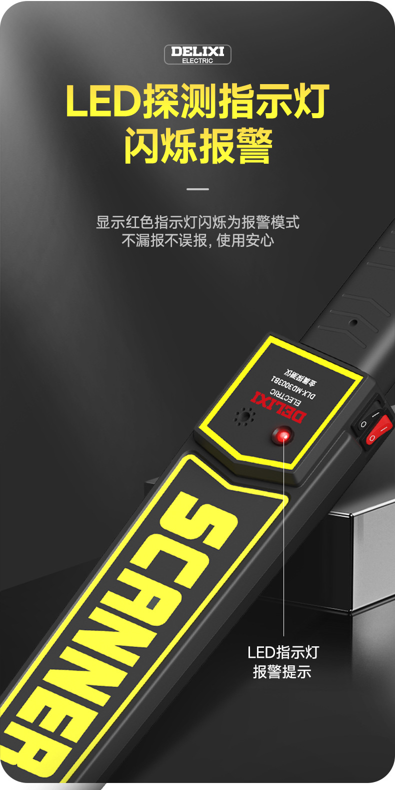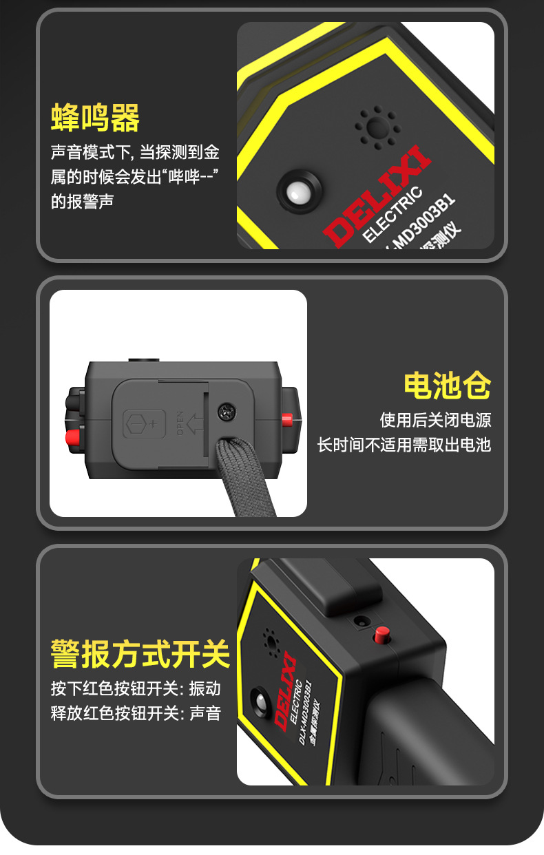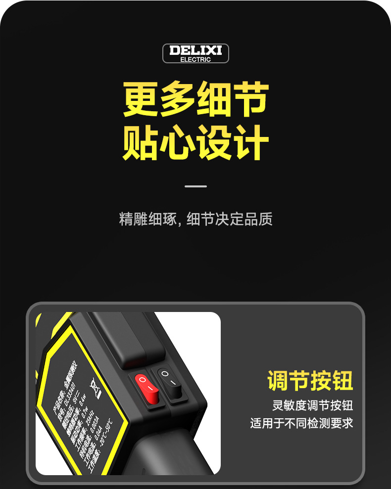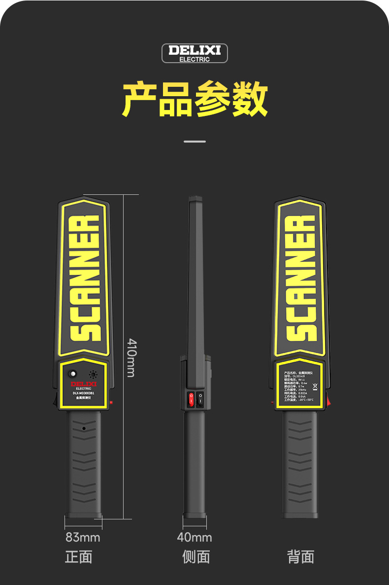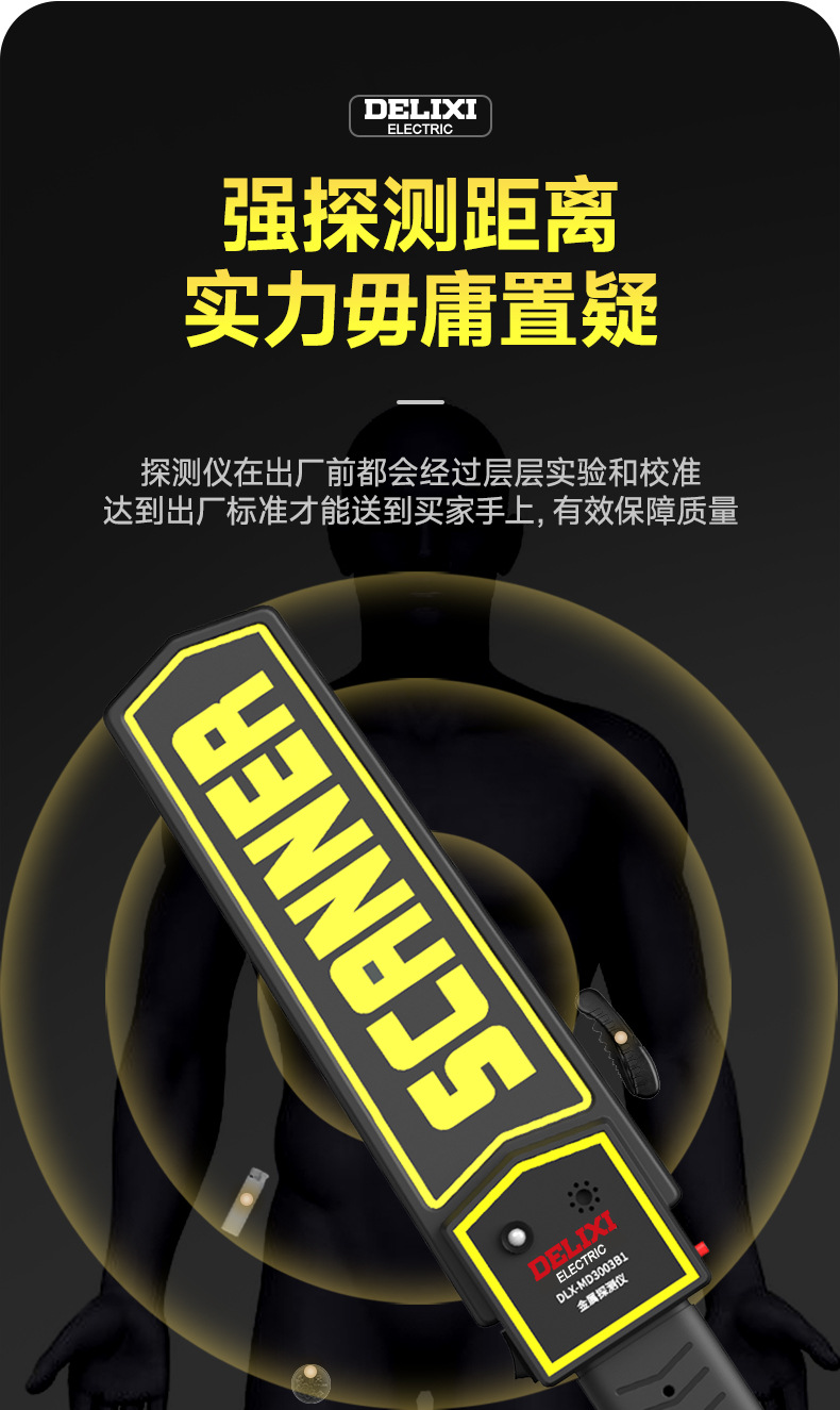 德力西MD3003B1手持金属探测仪 搜身安检探测器 声光震动双重报警