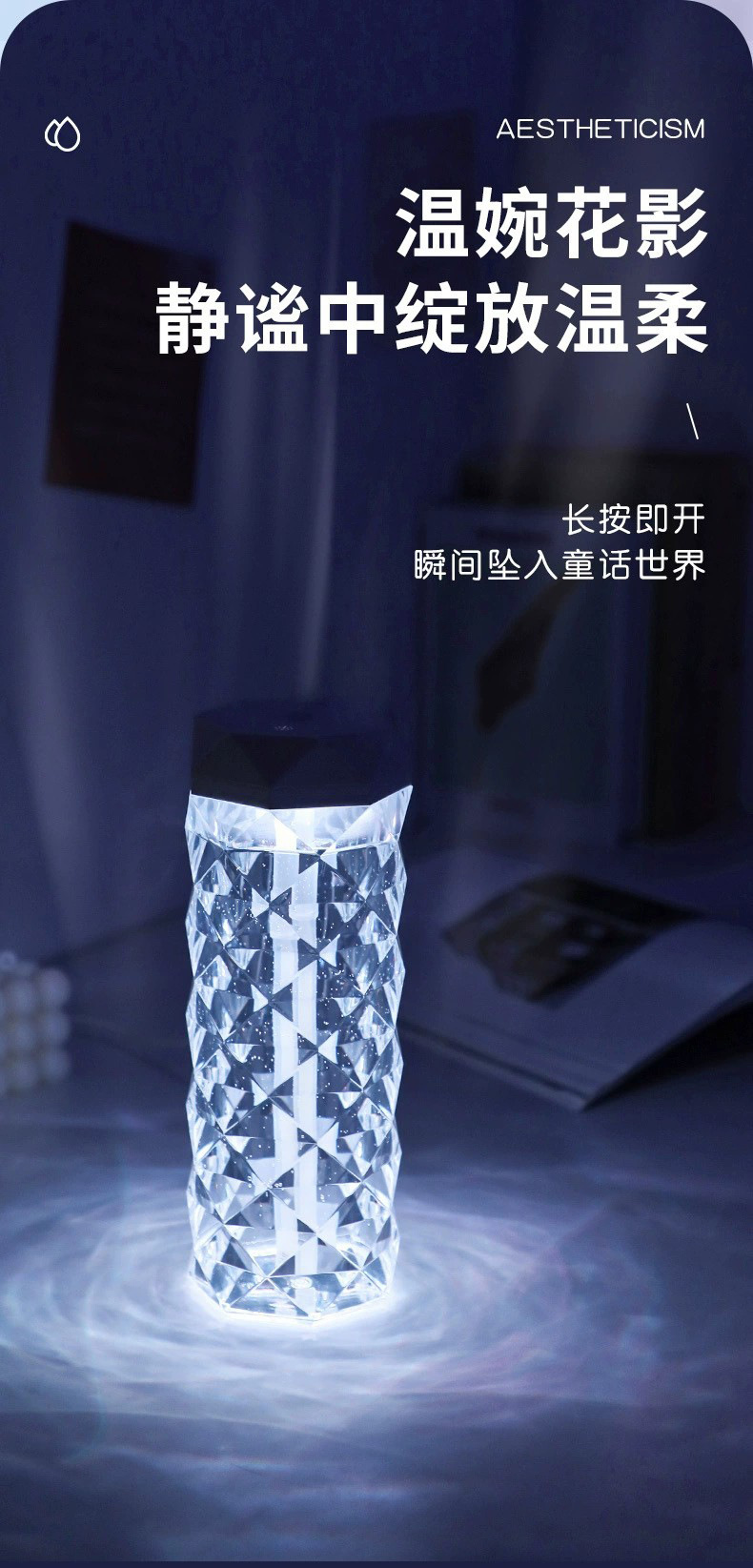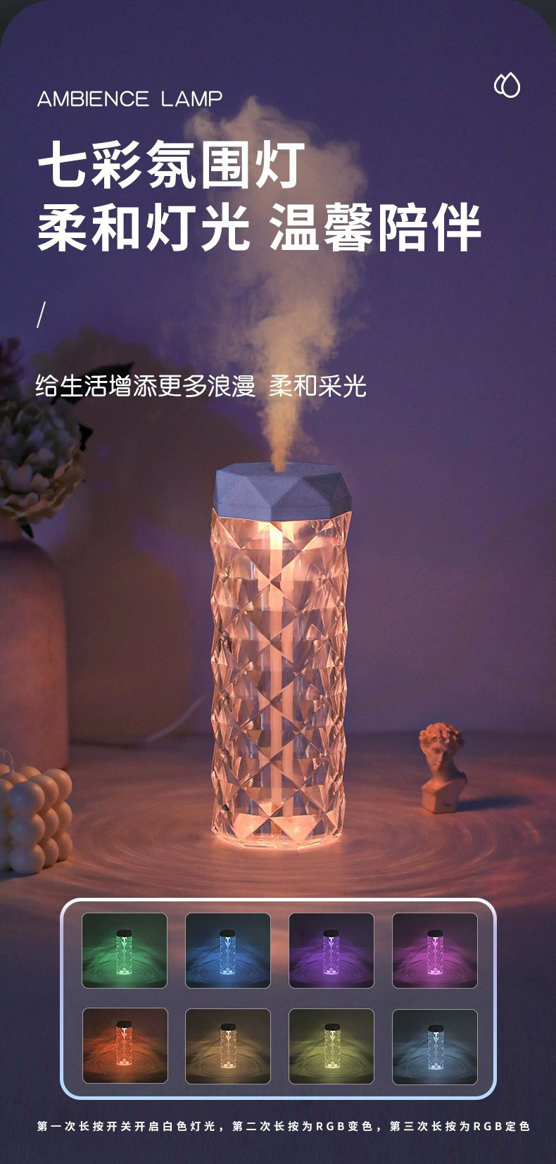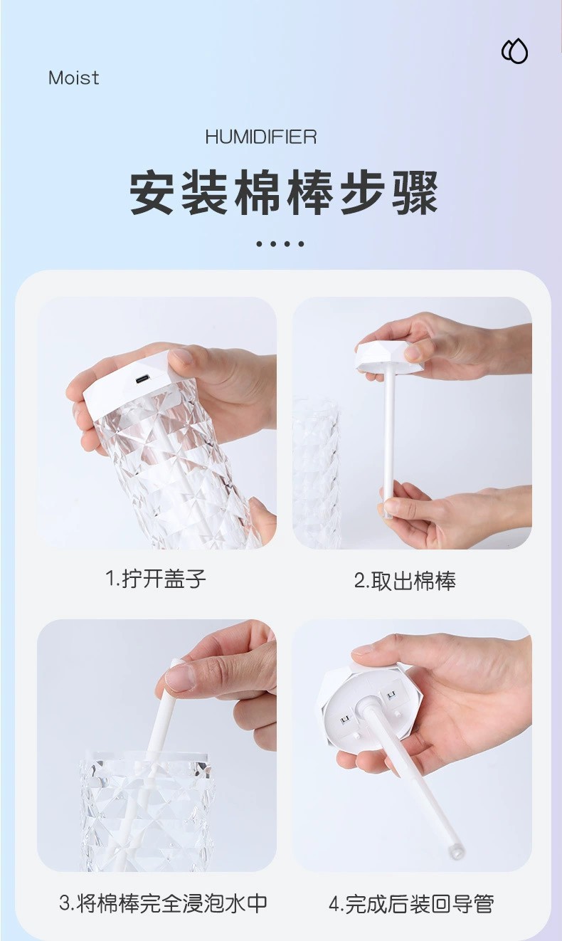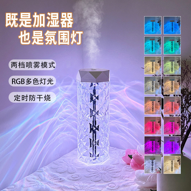 Красочный Кристалл Атмосфера Свет Увлажнитель Небольшой Портативный Домашний Офис Ароматерапия Спрей Увлажнитель