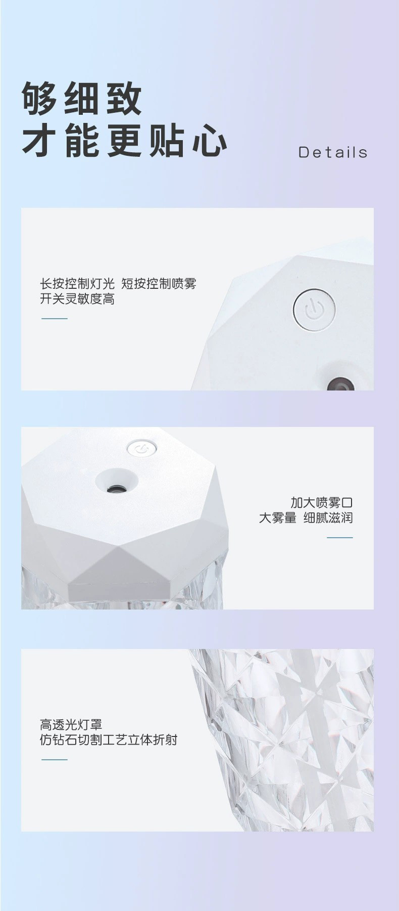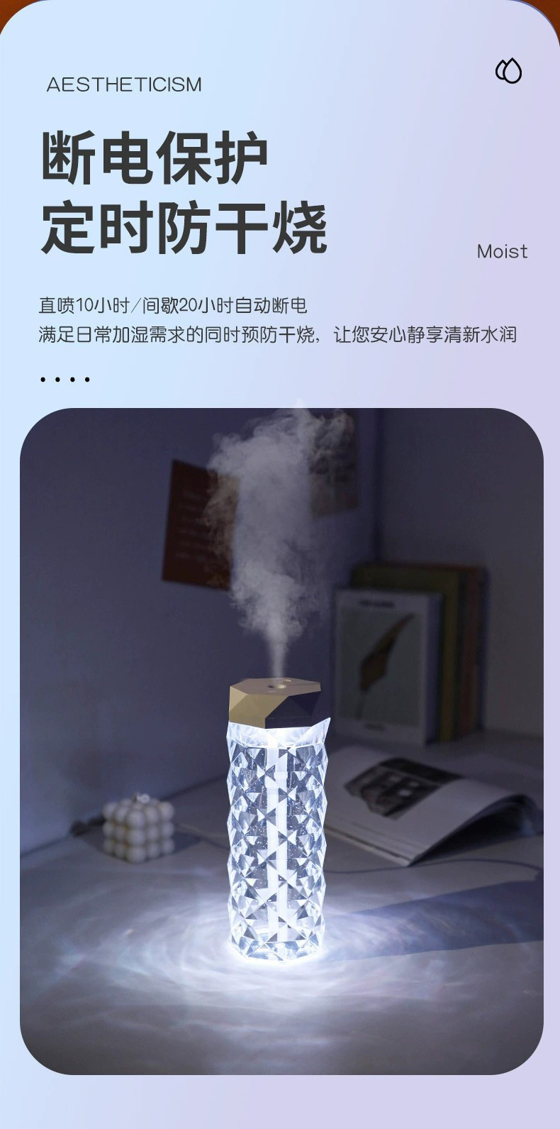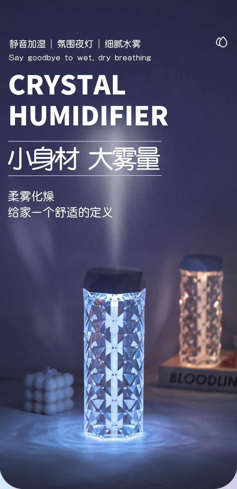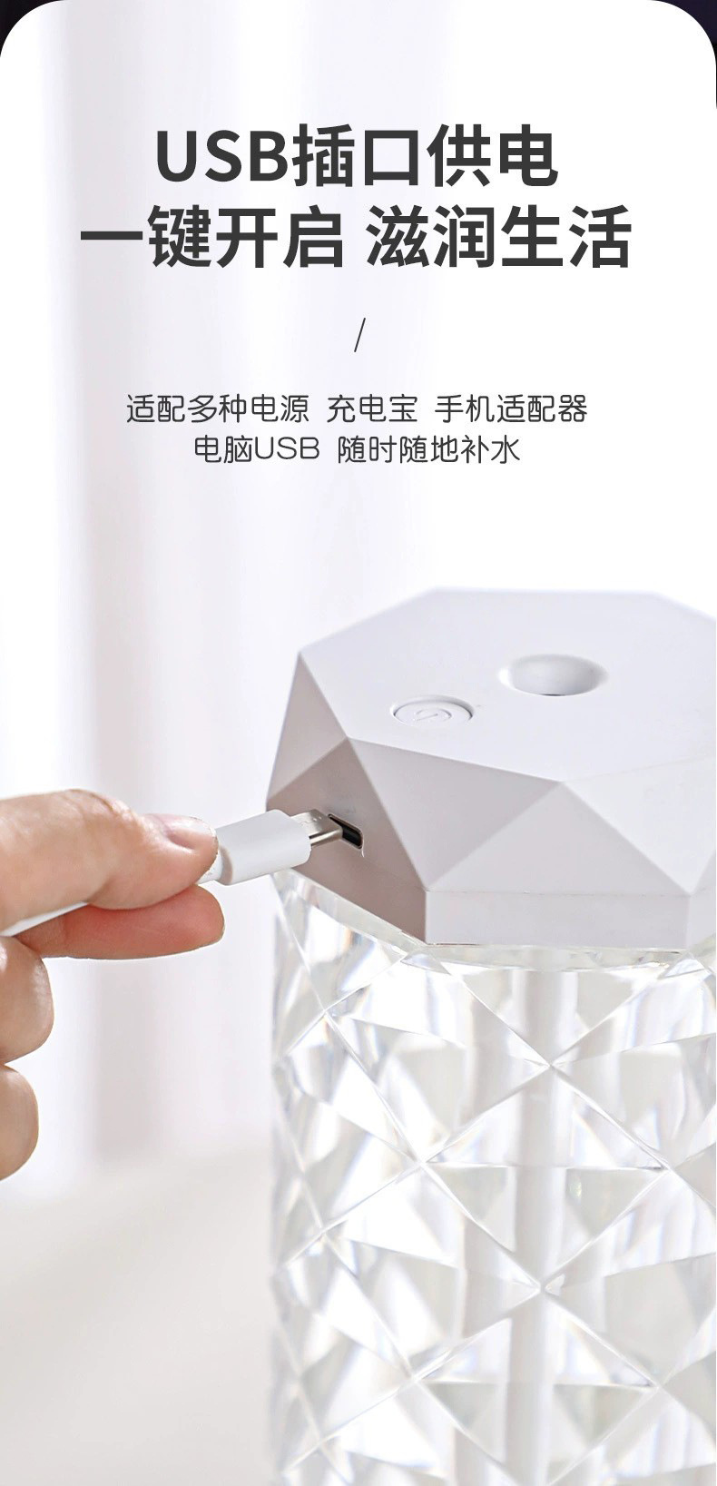 Красочный Кристалл Атмосфера Свет Увлажнитель Небольшой Портативный Домашний Офис Ароматерапия Спрей Увлажнитель