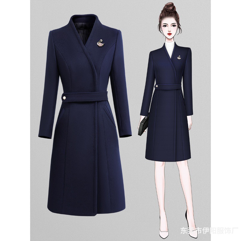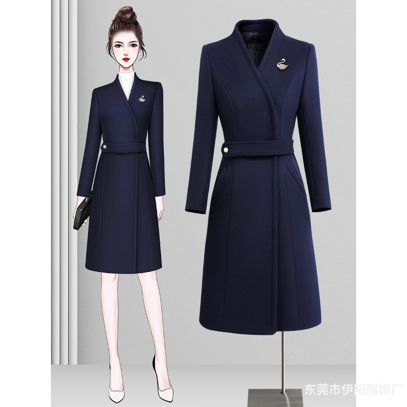 Высококачественная профессиональная шерстяная куртка, Женская осенне-зимняя Длинная шерстяная куртка, комбинезоны отдела продаж службы поддержки клиентов на местах