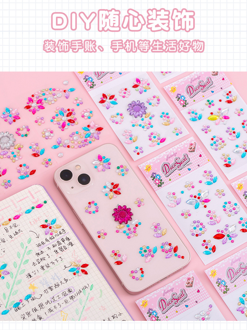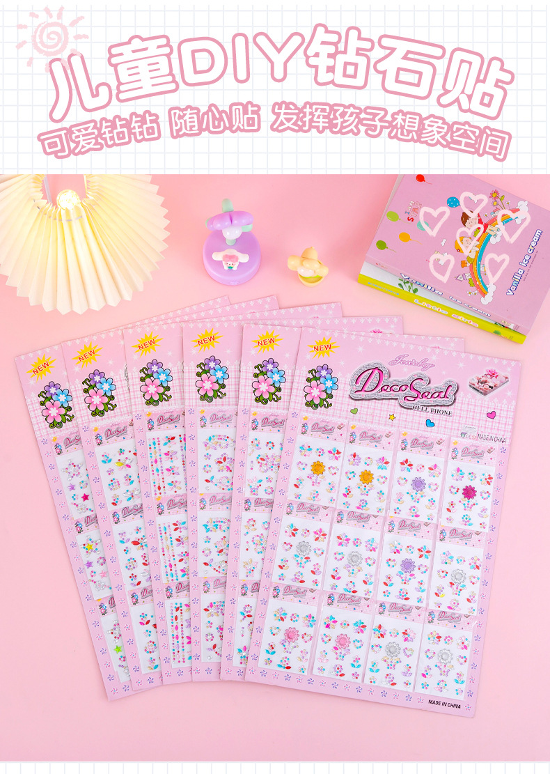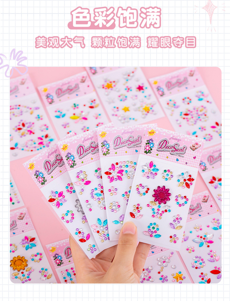 Детские алмазные наклейки Хрустальные цветы Акриловые наклейки для мобильного телефона Декоративные наклейки для чашки с водой Материал для девочек DIY Наклейки оптом