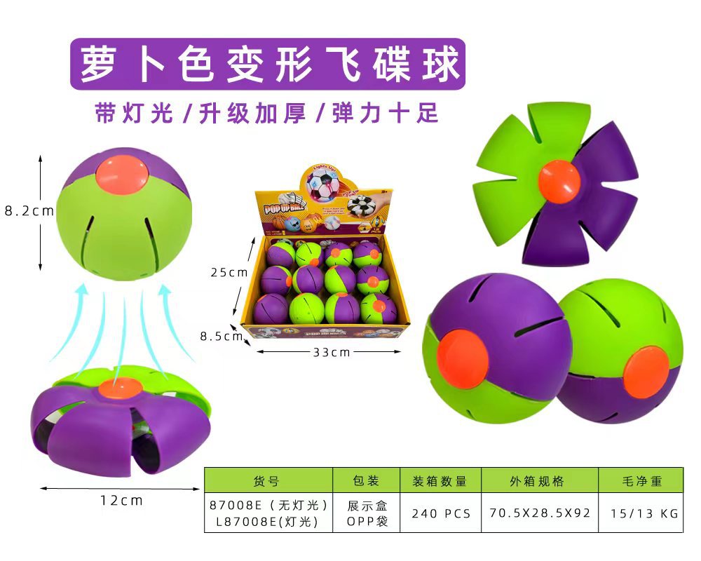 Мяч морковного летающего блюдца [без света]; Мяч-блюдце с морковной летучей мышкой [модель с 3 огнями]; Мяч морковного летающего блюдца [модель с 6 огнями]; Мяч морковного летающего блюдца [одинарная лампа + музыкальная модель]; Маленький летающий блюдце редис [тип освещения]; Маленький шаг редиса [без огней]