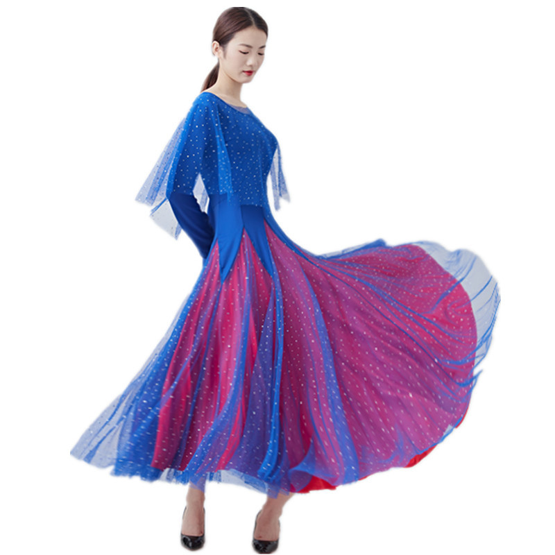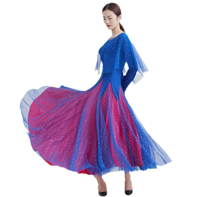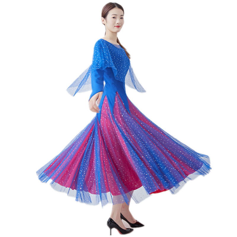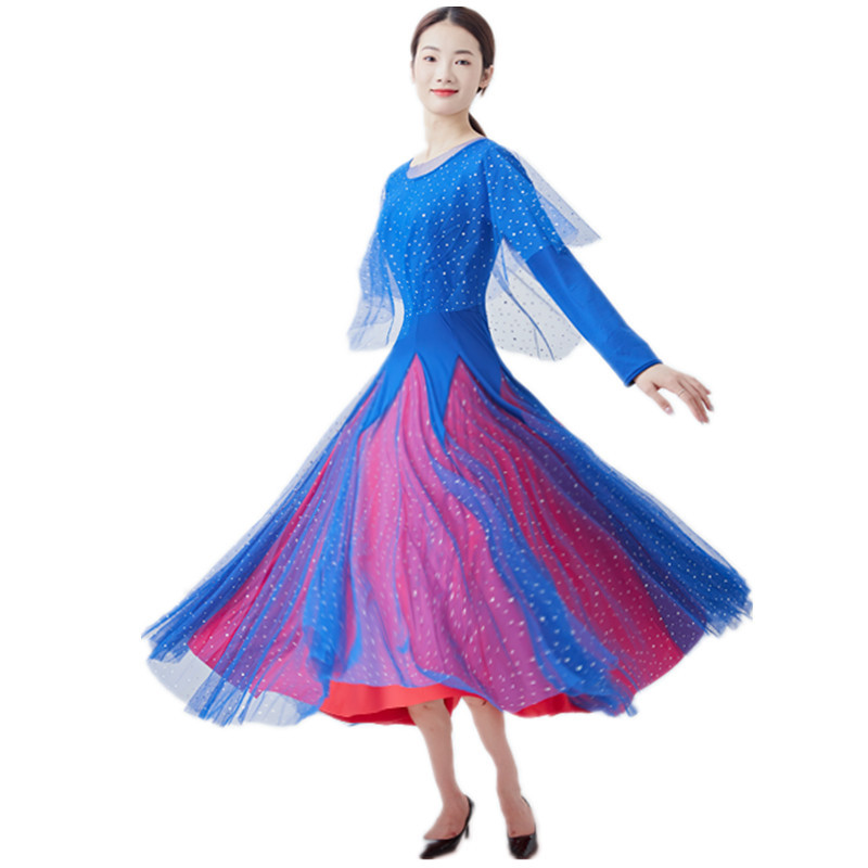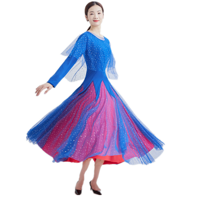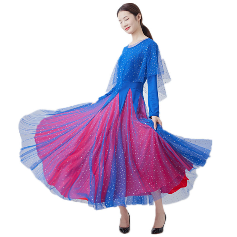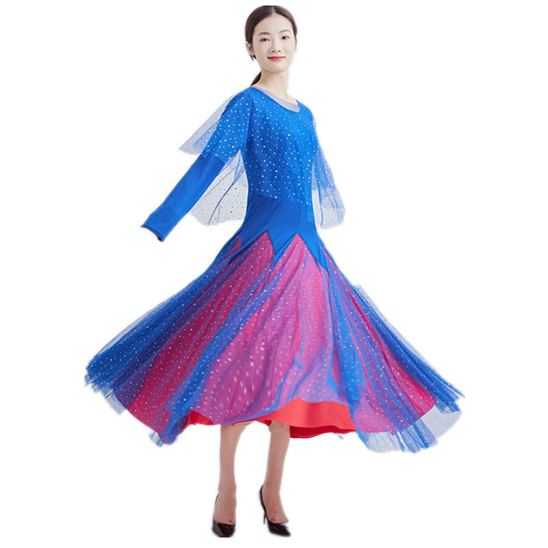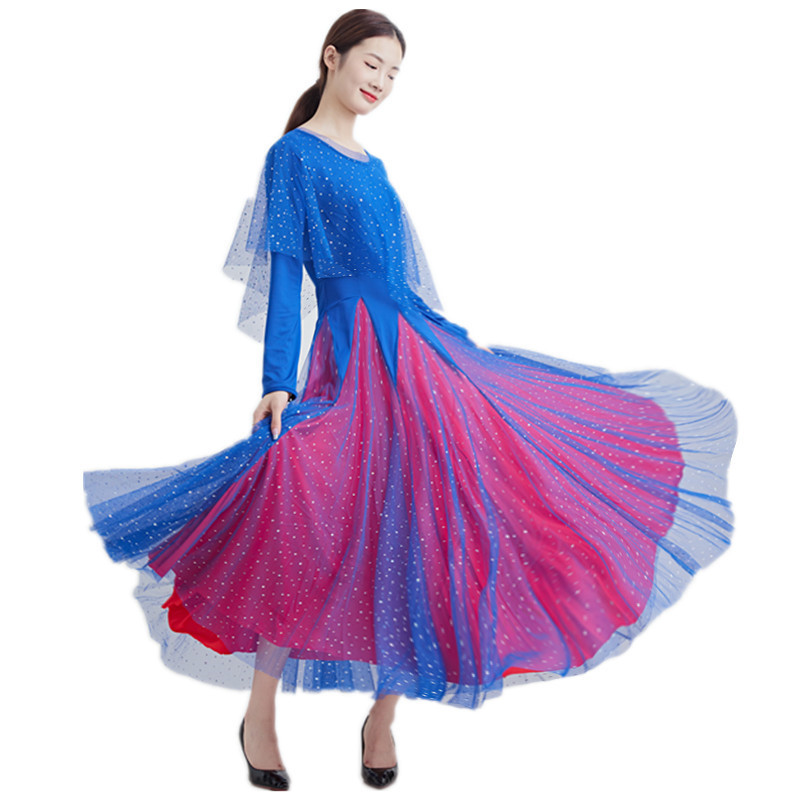 Современная танцевальная одежда для бальных танцев Платье для выступлений с длинным рукавом Большое качели Танцевальное платье Новый стиль Практичное платье