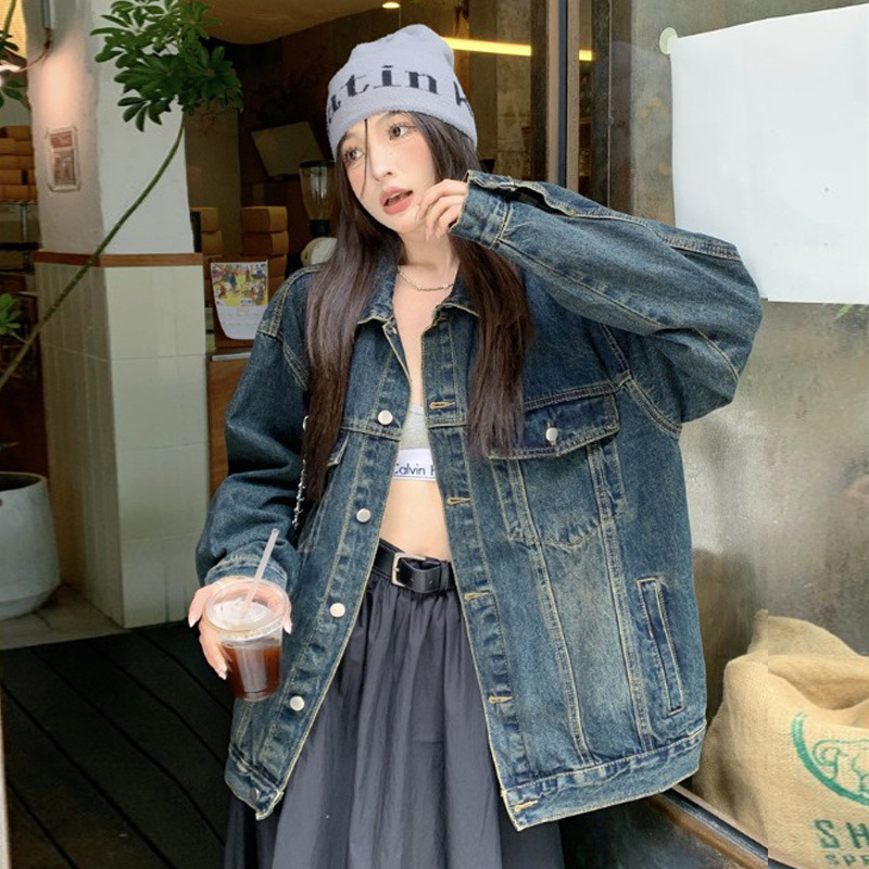 Винтажная джинсовая одежда Высококачественная куртка Sense, Женская Осень 2023, новая свободная Повседневная американская куртка, Топ