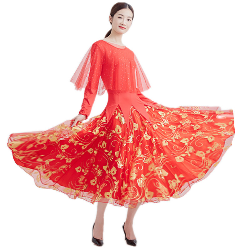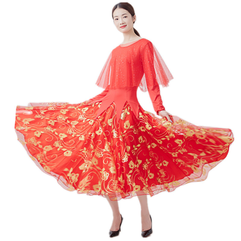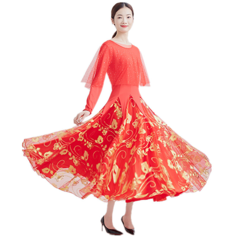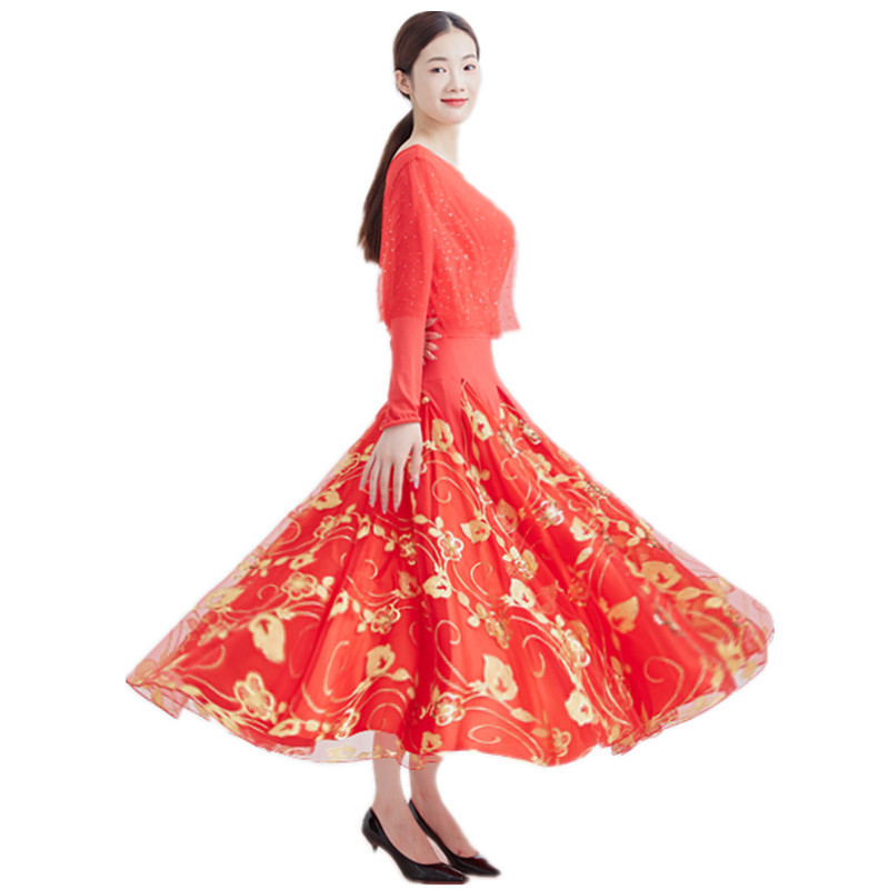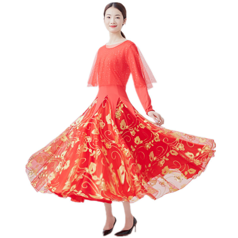 Новое современное танцевальное платье, длинная юбка, костюм для выступлений с длинными рукавами, костюм для бальных танцев, современный танец