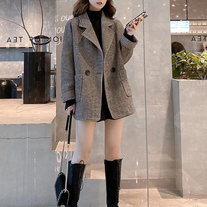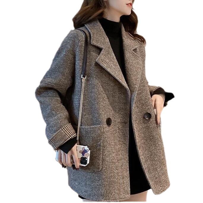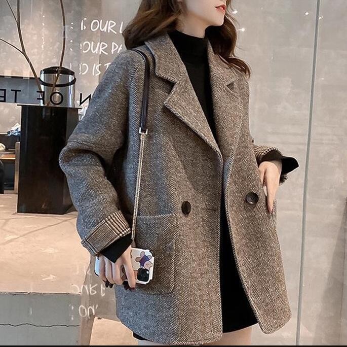 Женский блейзер осень-зима 2025: новинка в корейском и британском стиле, шерстяной, утолщенный, свободный, повседневный, укороченный пиджак