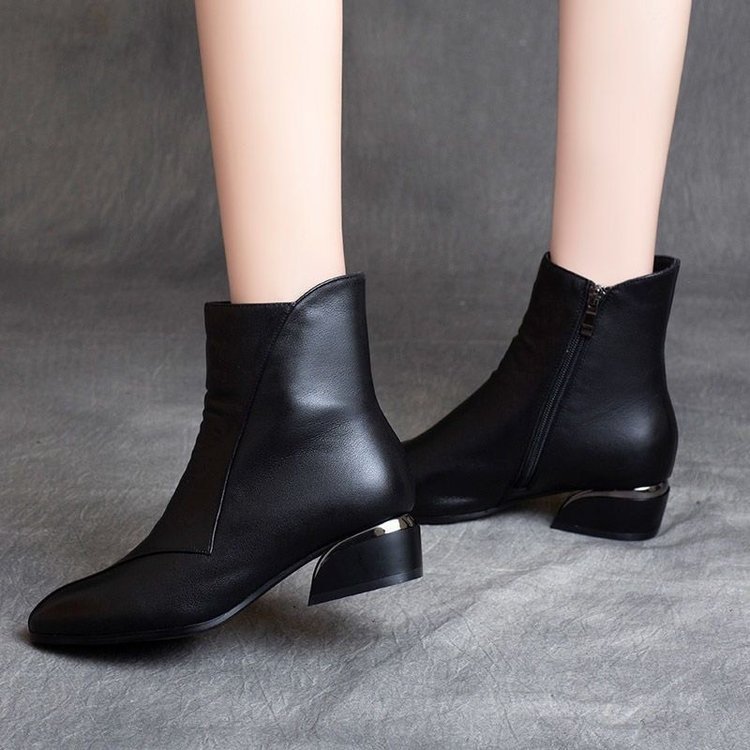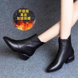 Осенне-зимние Новые короткие модные сапоги в Корейском стиле с острым носком на толстом каблуке, женские кожаные сапоги для зрелых мам, женские сапоги на среднем каблуке