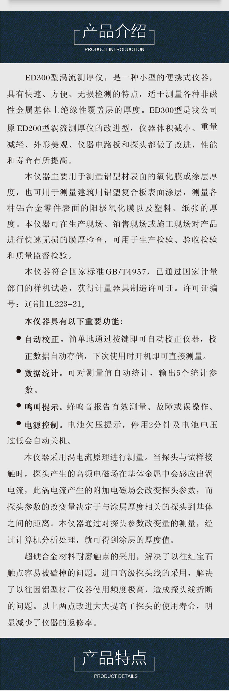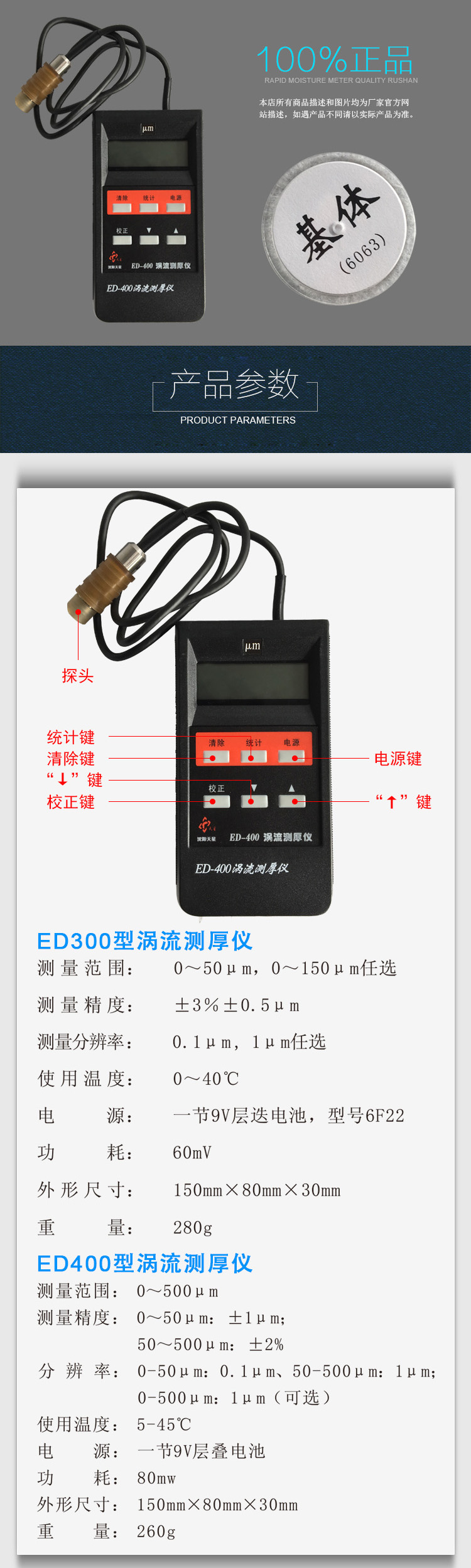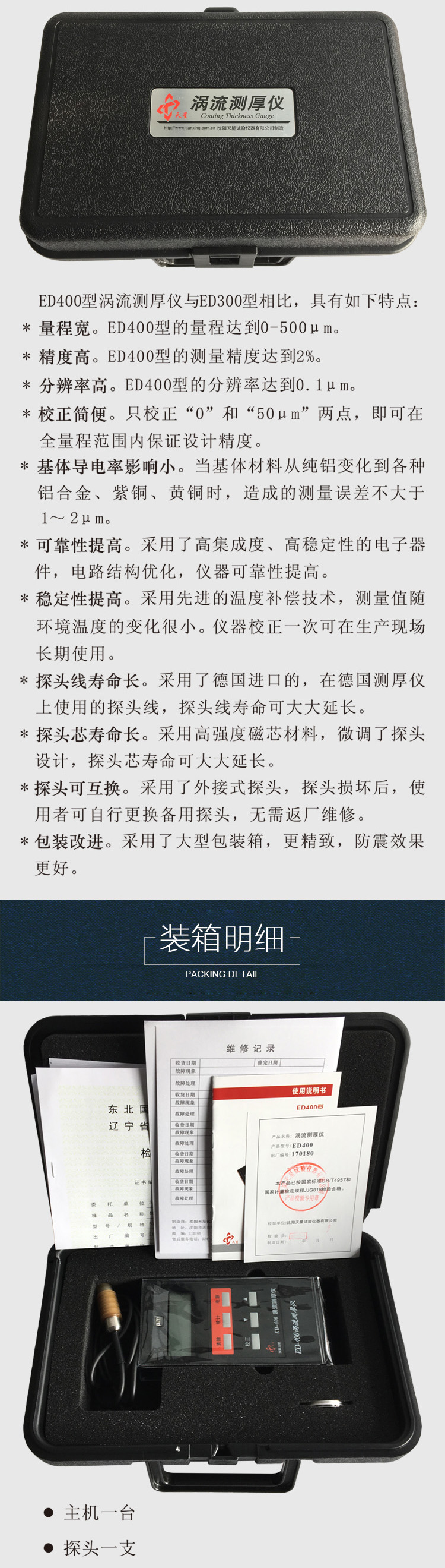 沈阳天星 ED400涡流测厚仪 ED300漆膜铝阳极氧化膜厚铝材涂层测试