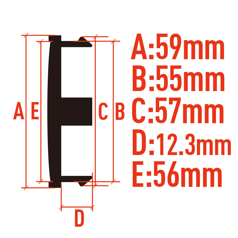 产品尺寸:盖面外直径59MM, 卡脚凸径:57MM,脚根55MM( 以上尺寸均为手工测量,会有0.1-0.5MM的误差)
