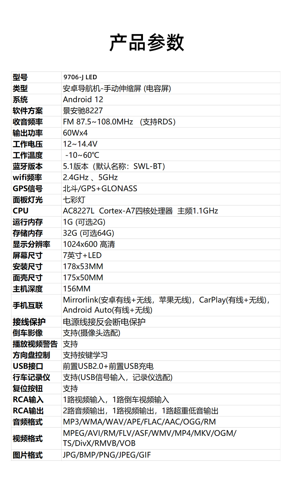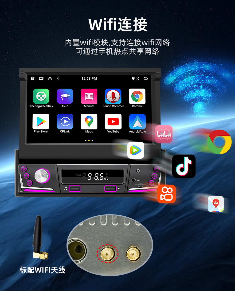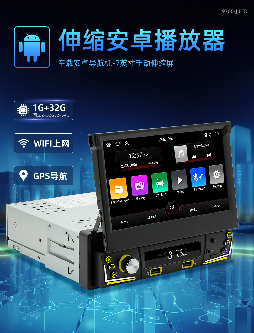 类型:安卓导航机-手动伸缩屏 (可选配电动伸缩)