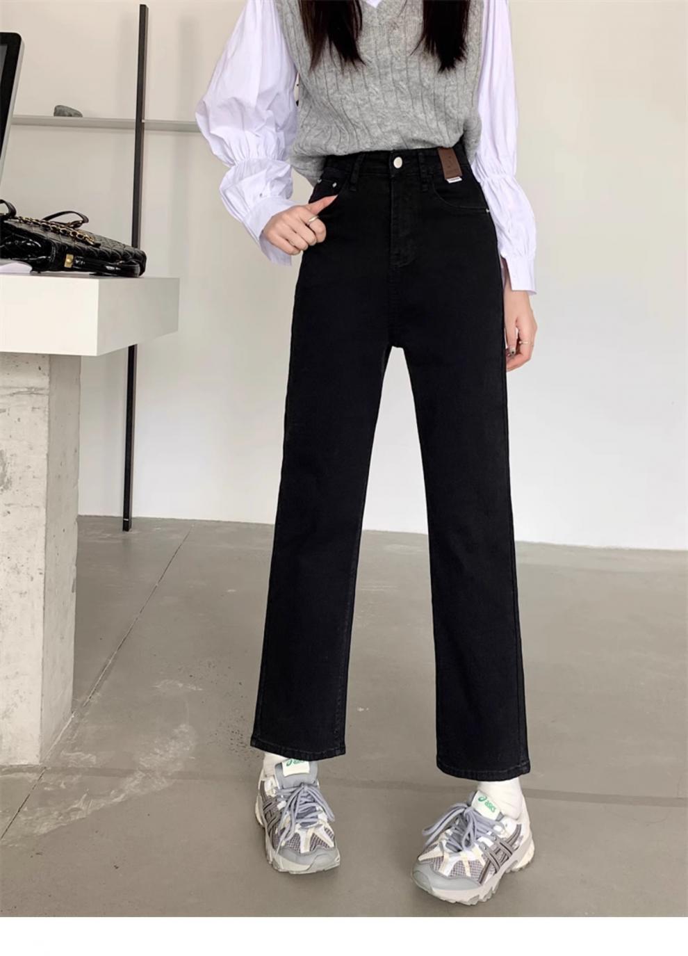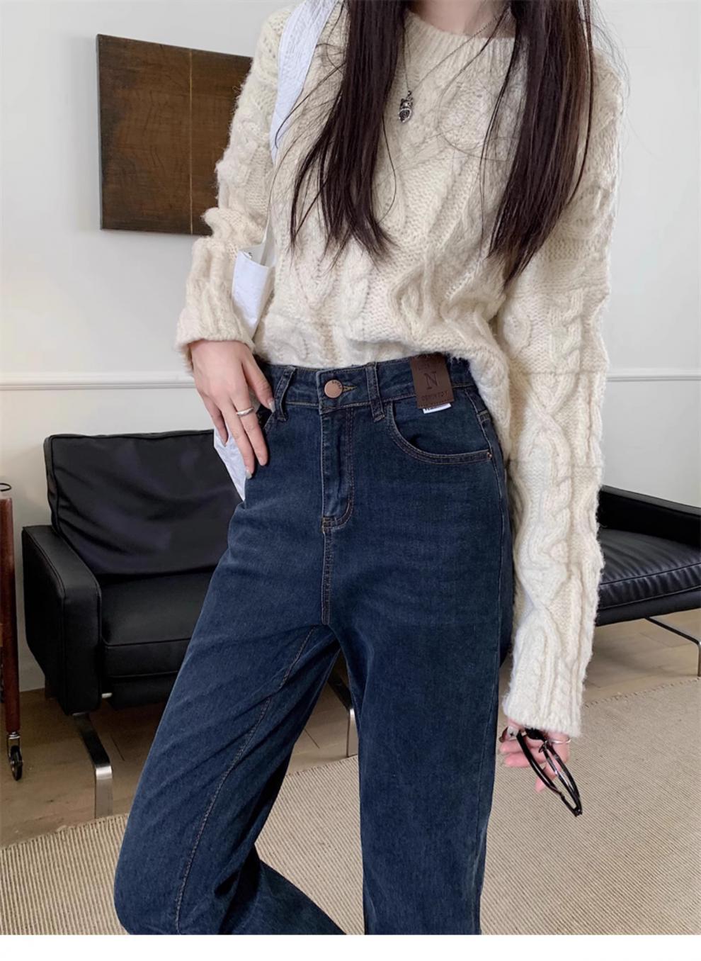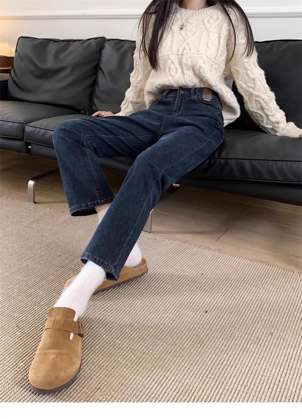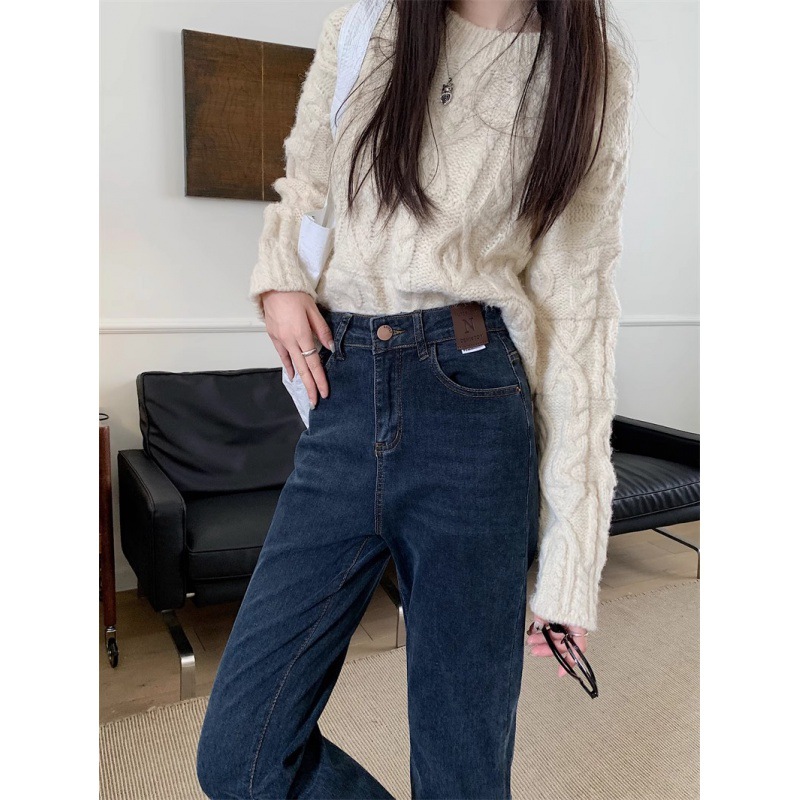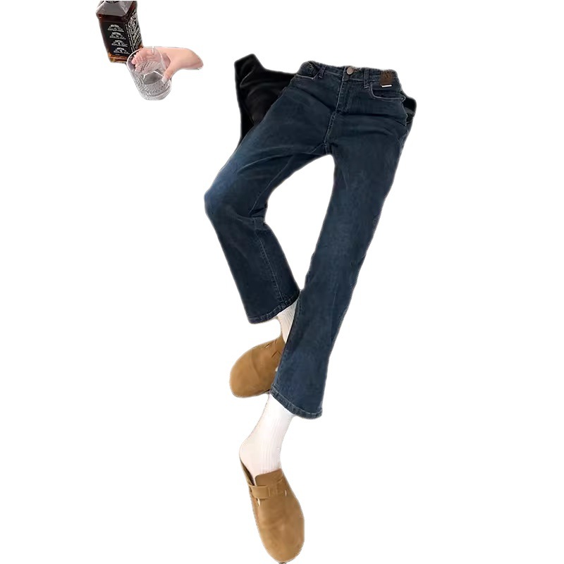 Женские прямые брюки с высокой талией, Зимние новые джинсовые брюки с флисовой подкладкой, толстые женские грушевидные тонкие укороченные брюки для похудения