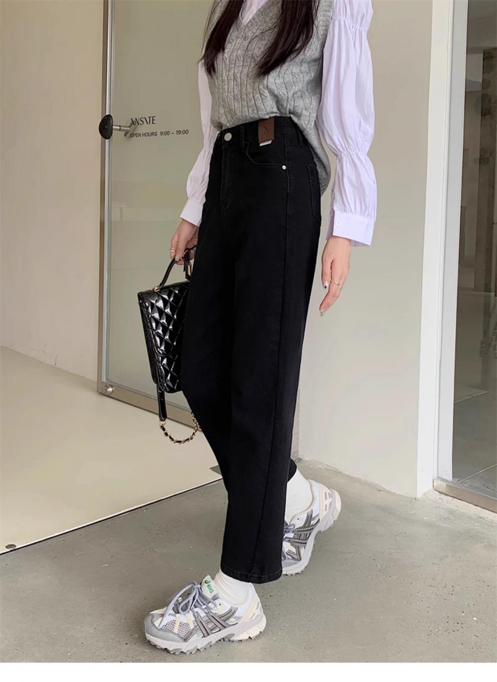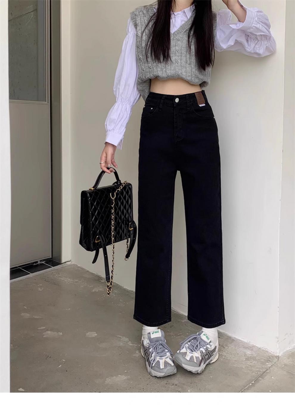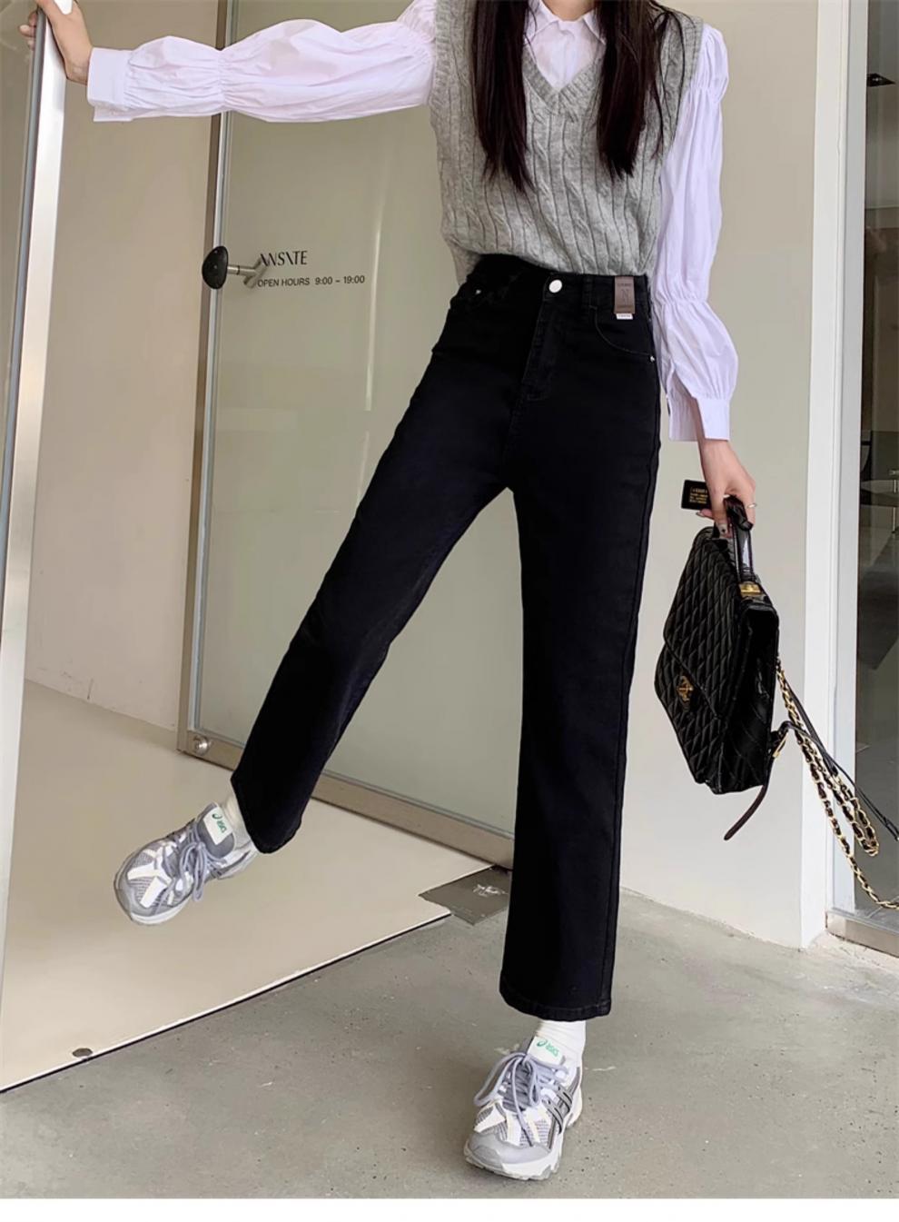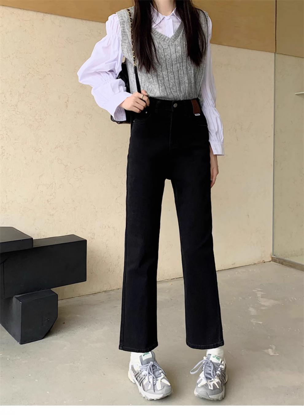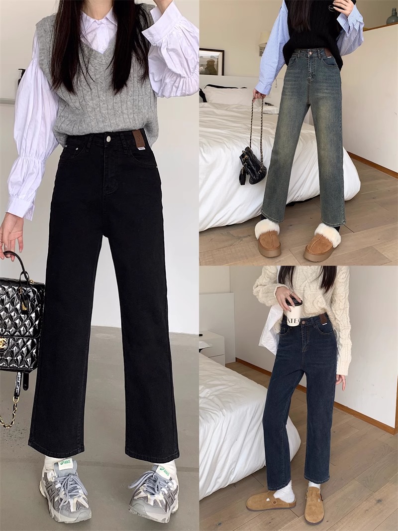 Женские прямые брюки с высокой талией, Зимние новые джинсовые брюки с флисовой подкладкой, толстые женские грушевидные тонкие укороченные брюки для похудения