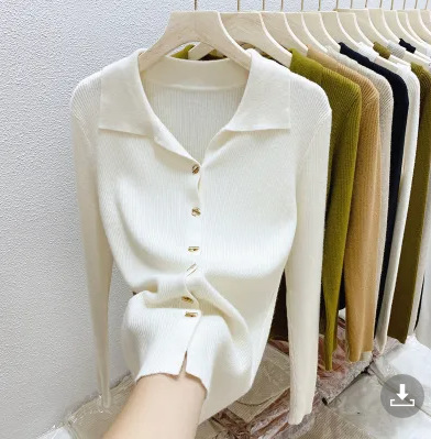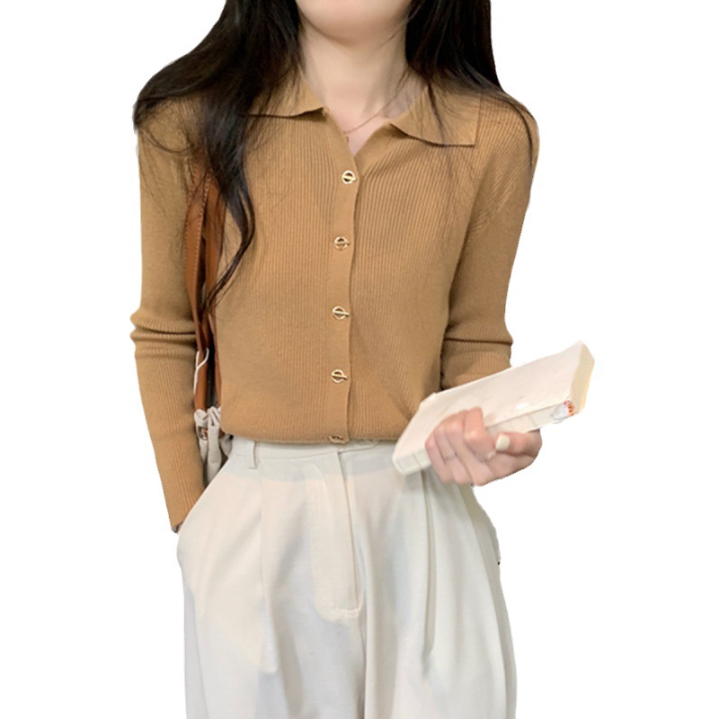 Элегантная Базовая рубашка с воротником-поло, Женский приталенный дизайнерский свитер для весны и осени, вязаный свитер, топ для ранней весны