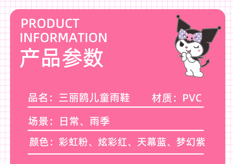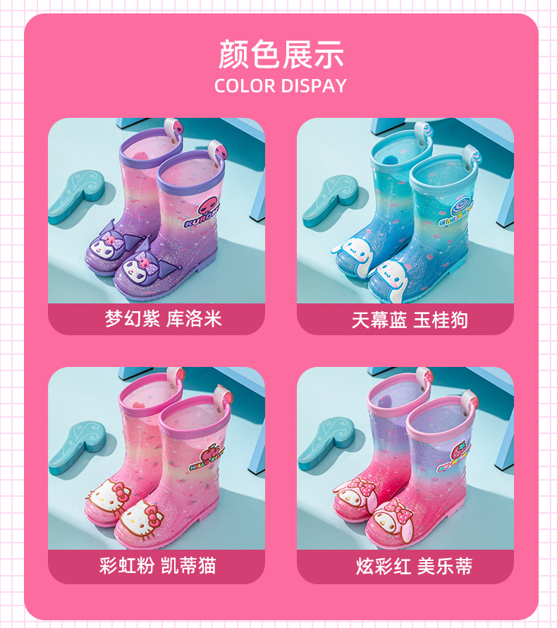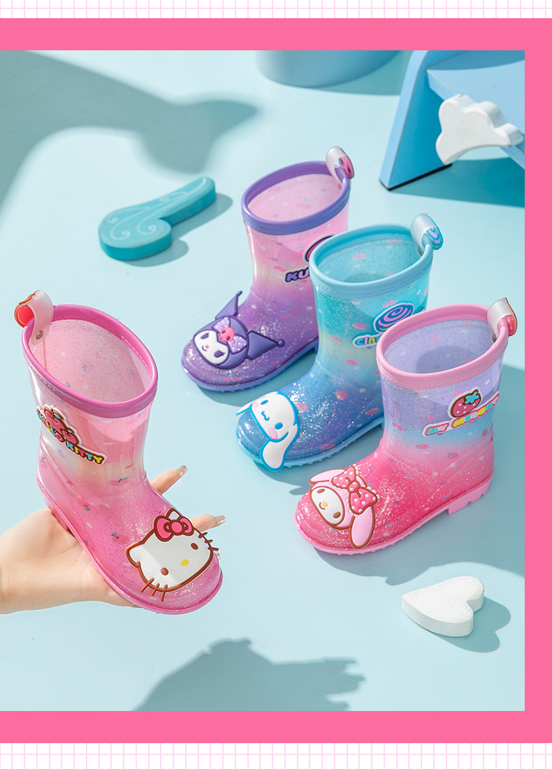 Санрио Детские дождевые сапоги для девочек Детские сапоги для детей Мультфильм Маленькая принцесса Куломи Югуй Собака для девочек Дождь резиновые сапоги