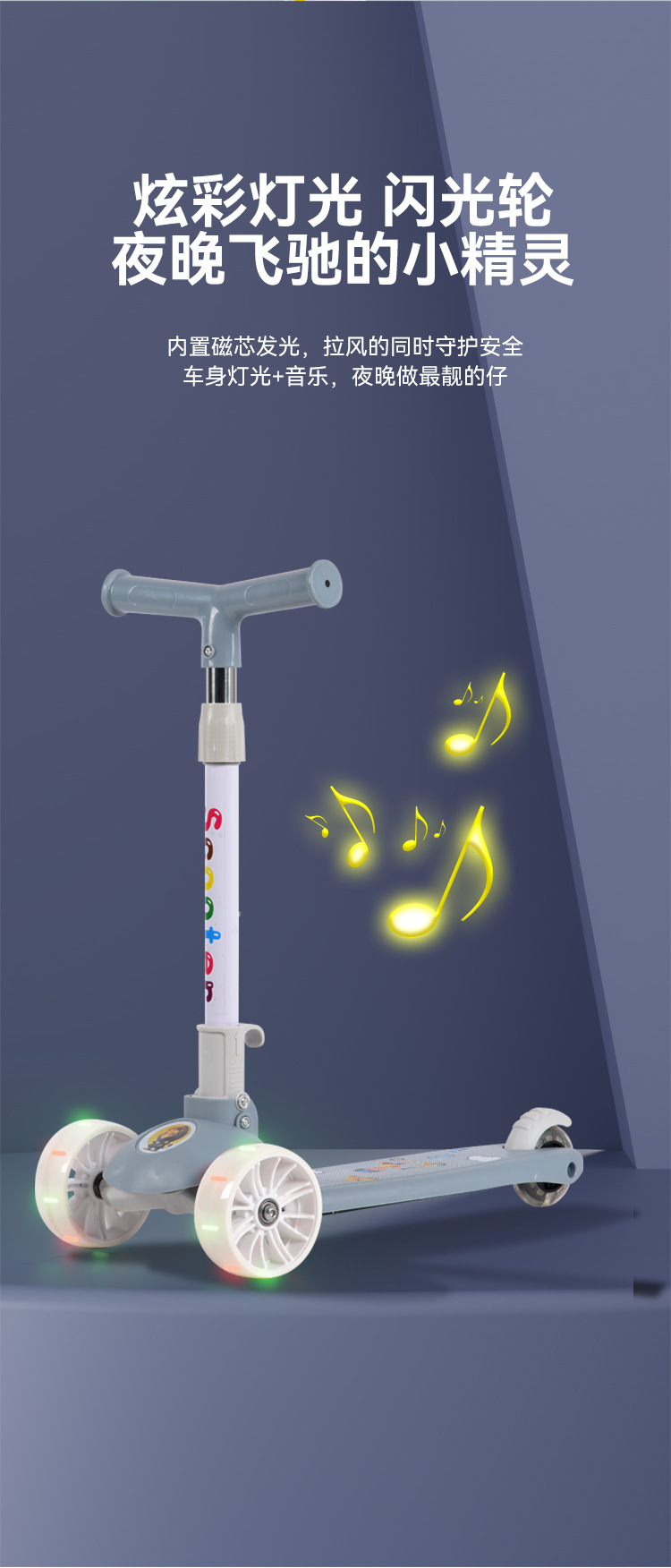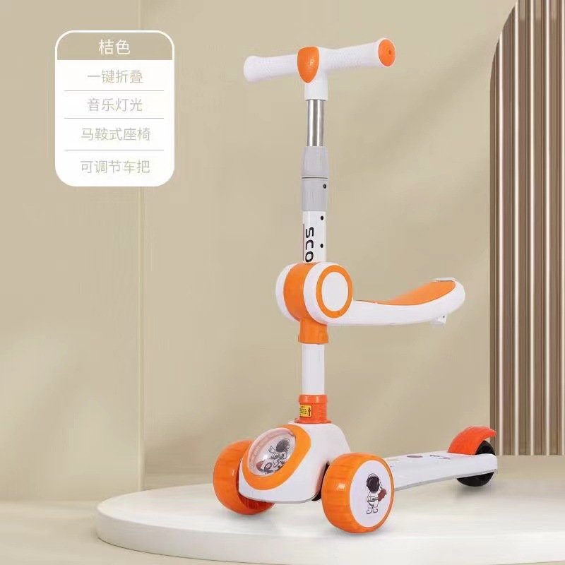 Складной детский самокат-космонавт с подсветкой и музыкой для детей от 2 до 7 лет, трехколесный самокат-твистер с защитой от опрокидывания