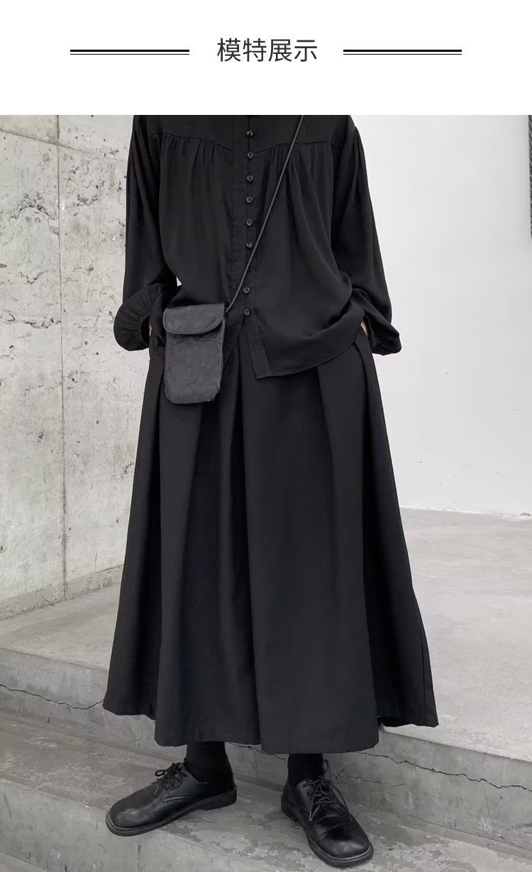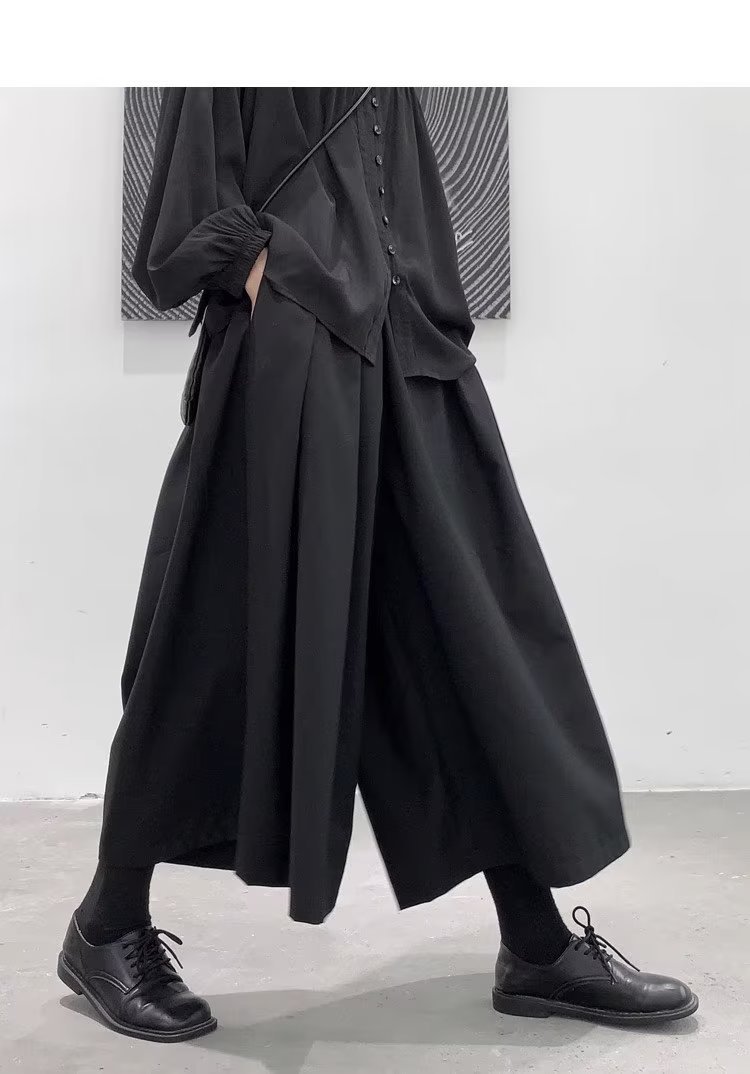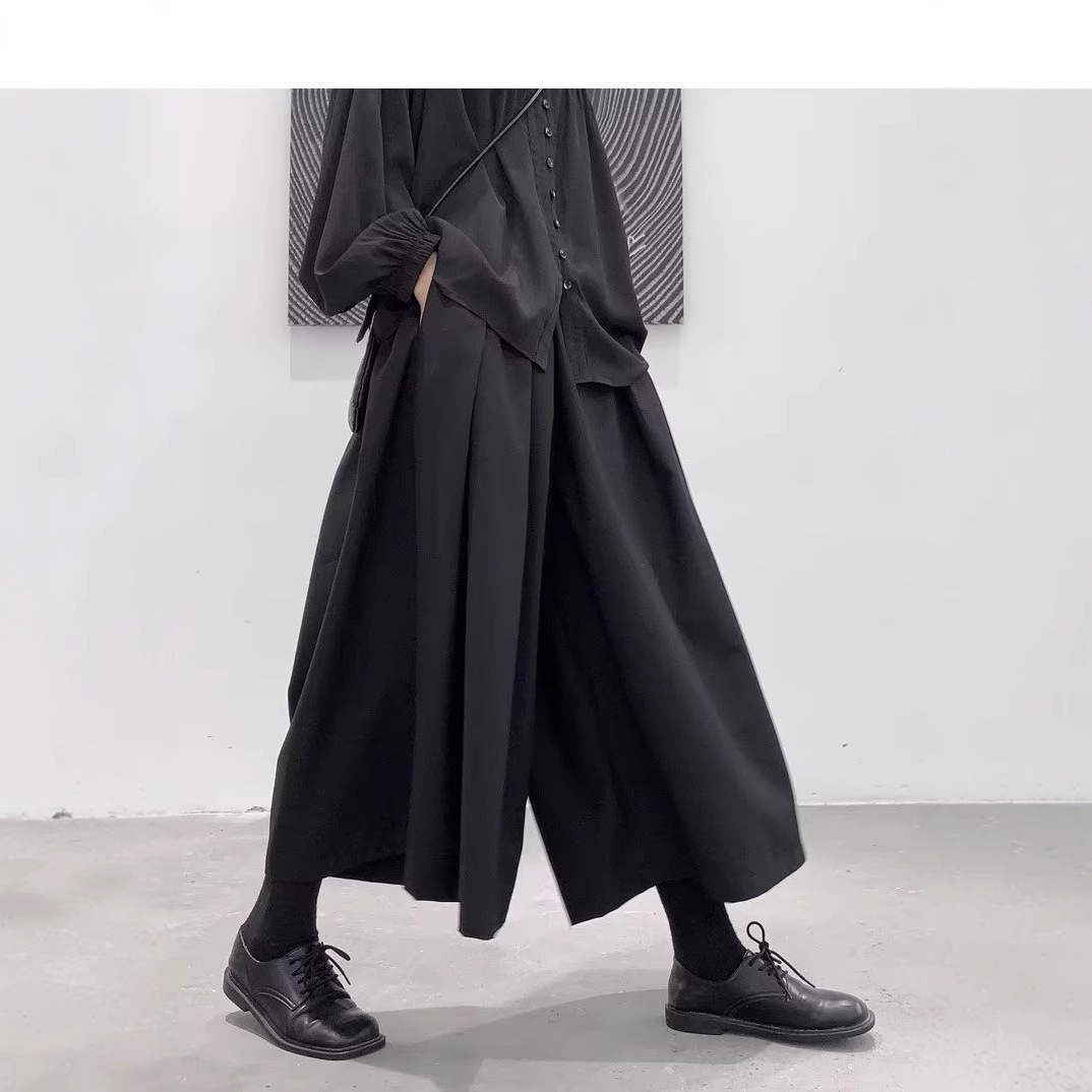 Yamamoto Темный весенне-осенний костюм с широкими штанинами, повседневные мужские свободные Укороченные прямые юбки с высокой талией и высокой посадкой, брюки с большими ногами
