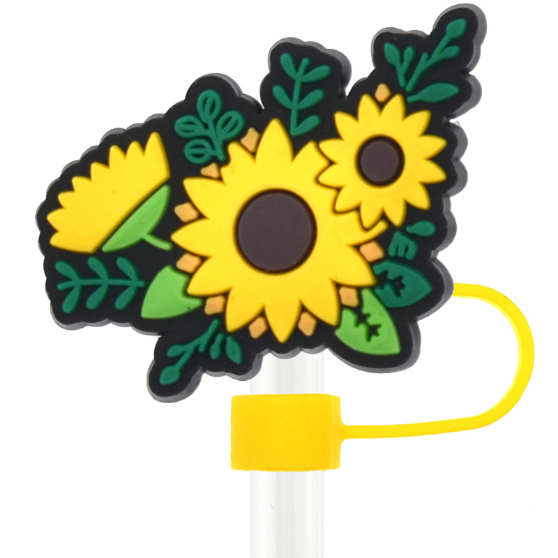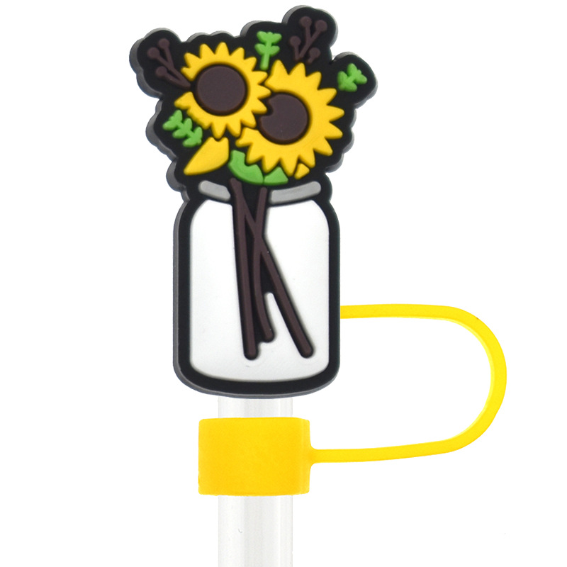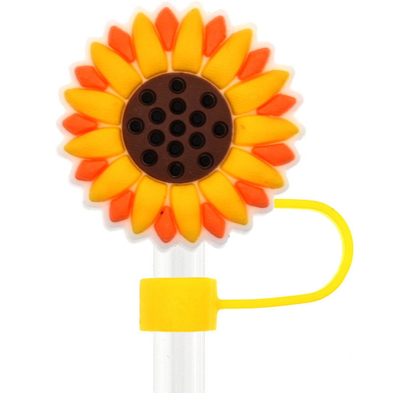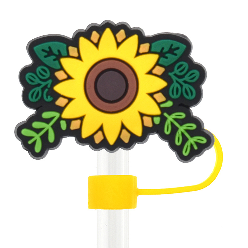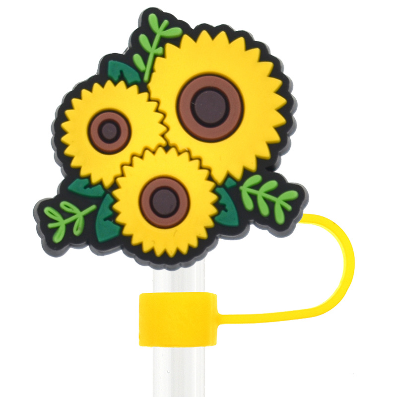 Новый Подсолнух соломенная крышка персонализированный мягкий клей 10 мм соломенный рукав мультфильм Вечеринка соломенная декоративная крышка пылезащитный чехол