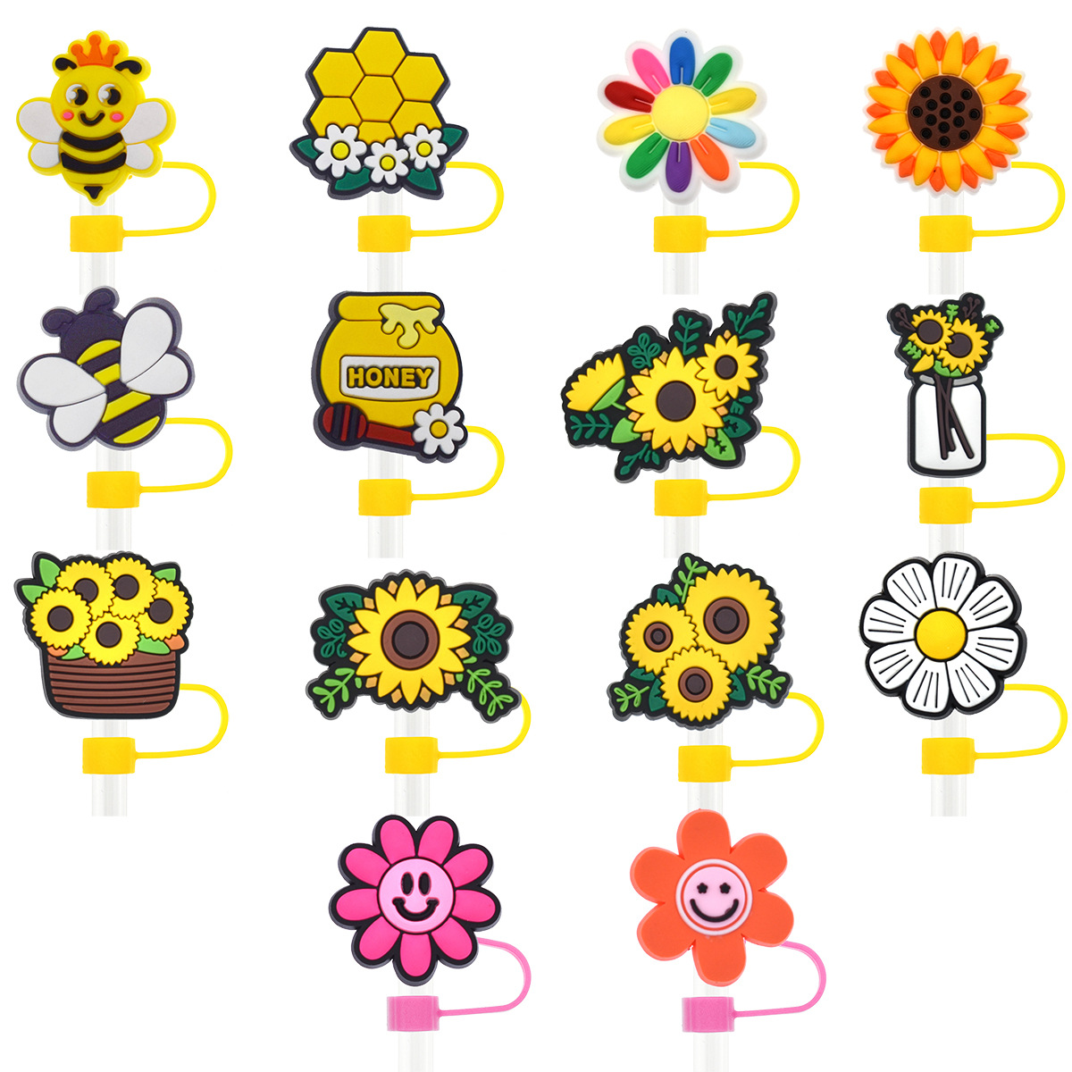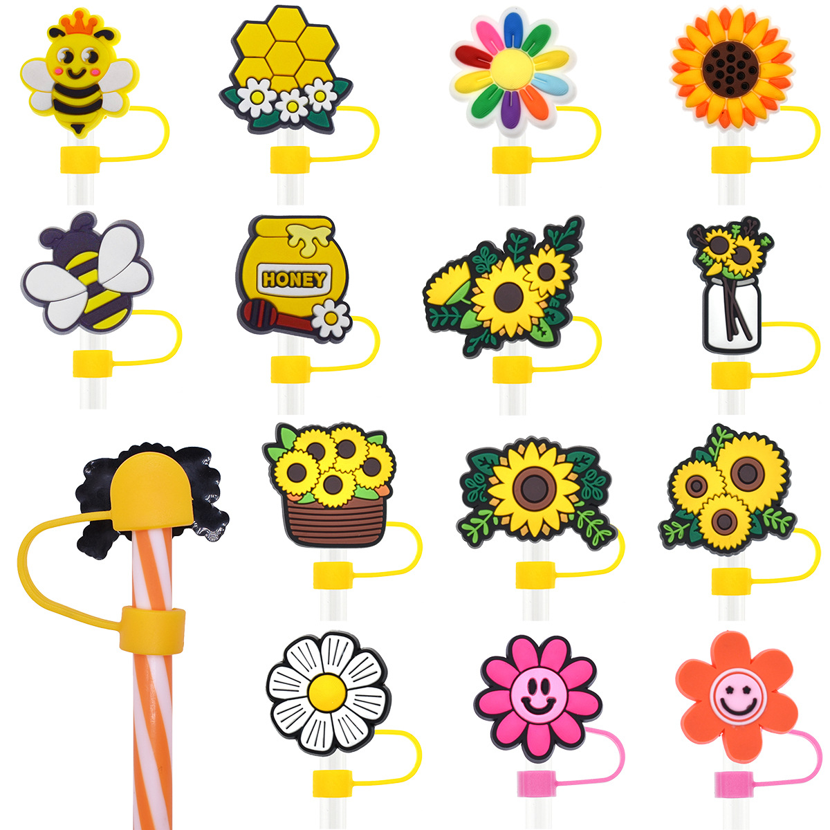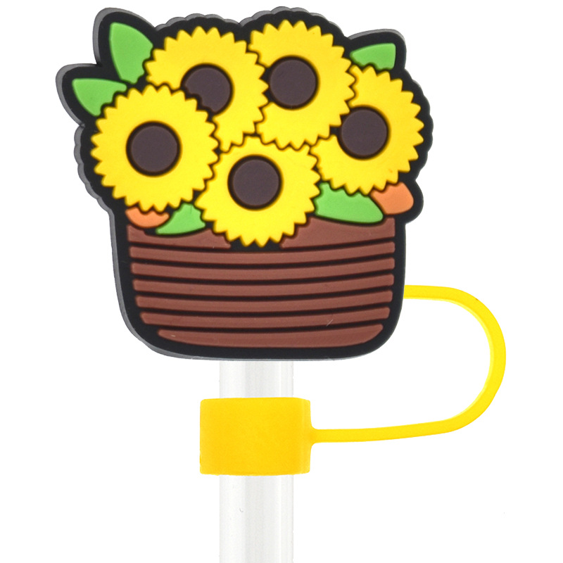 Новый Подсолнух соломенная крышка персонализированный мягкий клей 10 мм соломенный рукав мультфильм Вечеринка соломенная декоративная крышка пылезащитный чехол