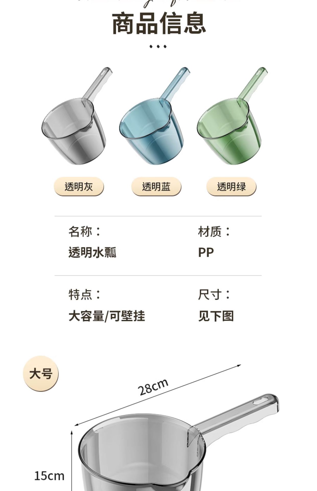 Бытовой водяной ковш, устойчивый к падению, утолщенная длинная ручка, кухонная большая ложка для воды, прозрачная пластиковая ложка для шампуня, ложка для воды