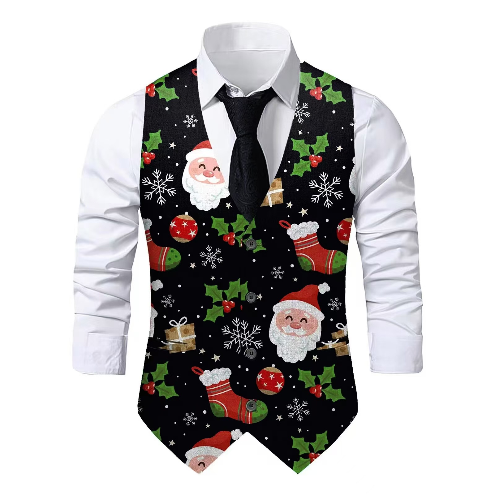 Мужской жилет на Рождество 2023 с случайным принтом, европейско-американский стиль, для вечеринок, в стиле джентльмена, приталенный, в европейско-американском тренде