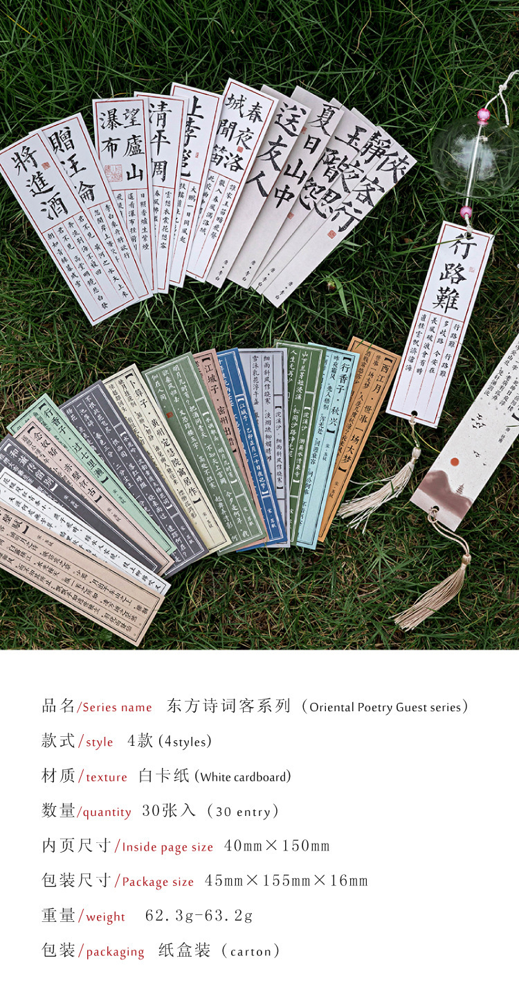 Мо Восточная поэзия Гостевая серия в штучной упаковке Закладки Китайский стиль Знаменитость Древняя поэзия Чтение Памятка Руководство Материал