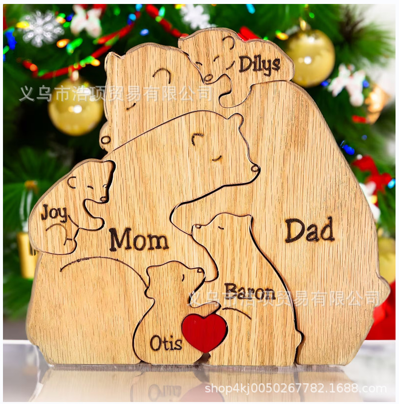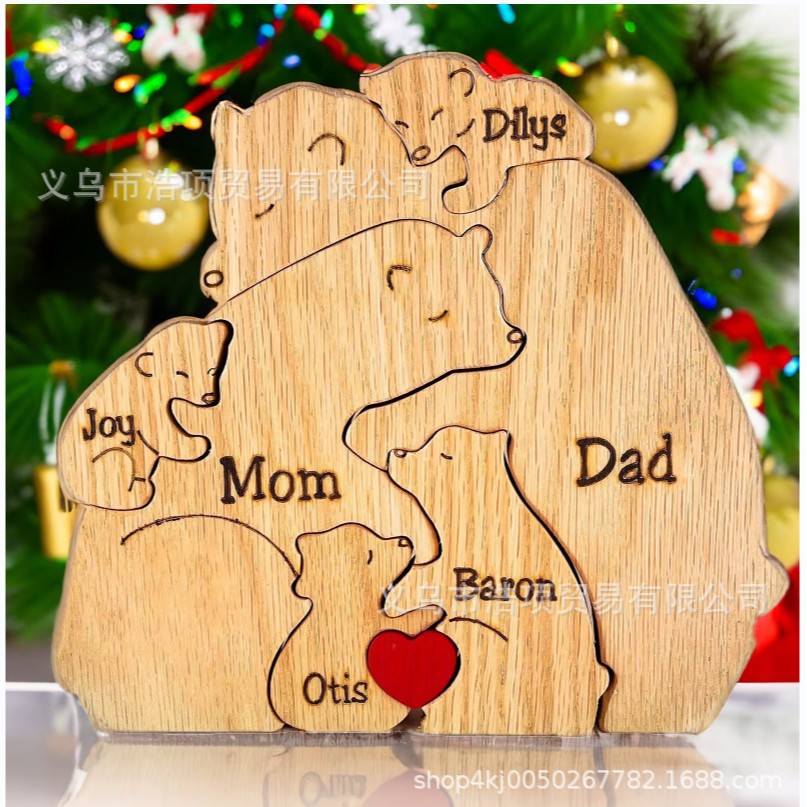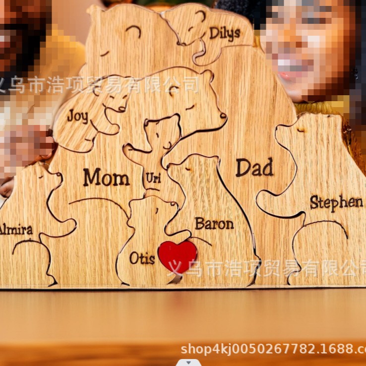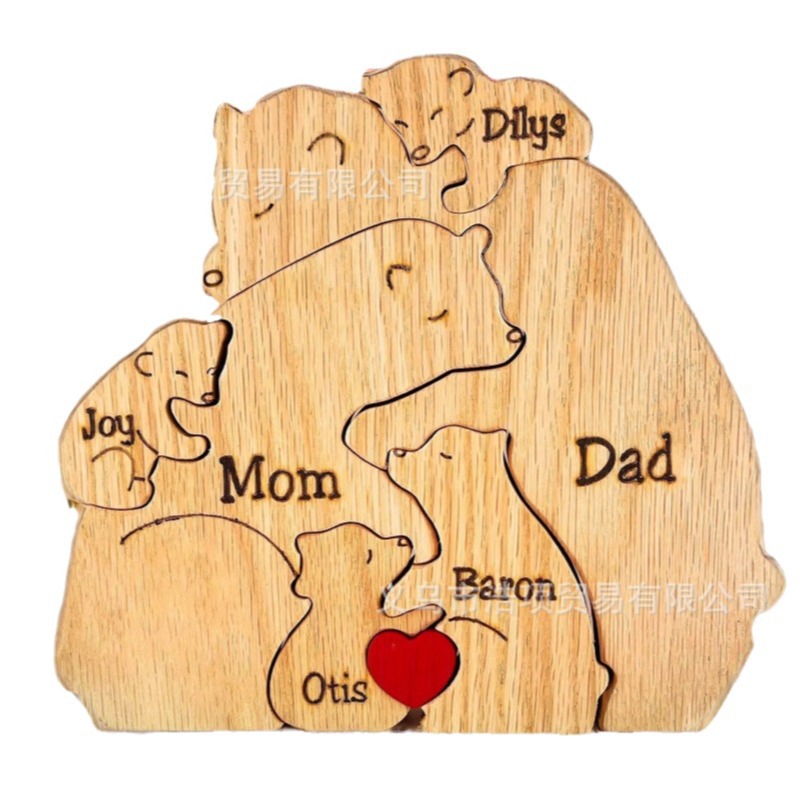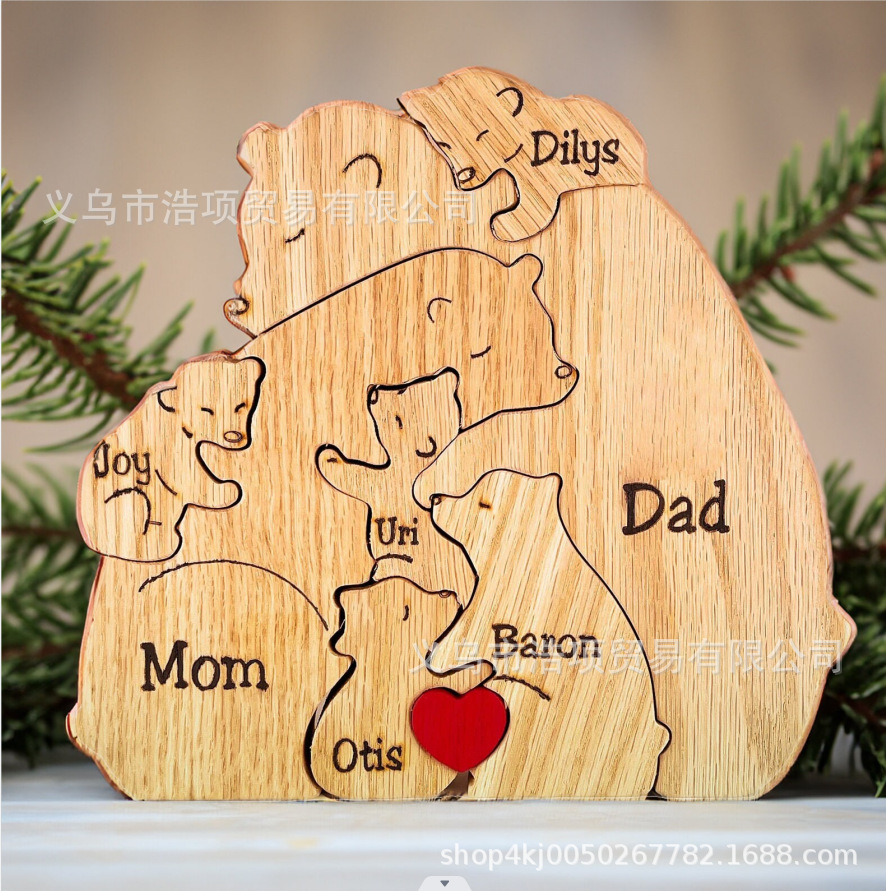 Европейская и американская независимая станция Amazon новые персонализированные деревянные украшения для семейных головоломок медведя могут быть настроены DIY информация