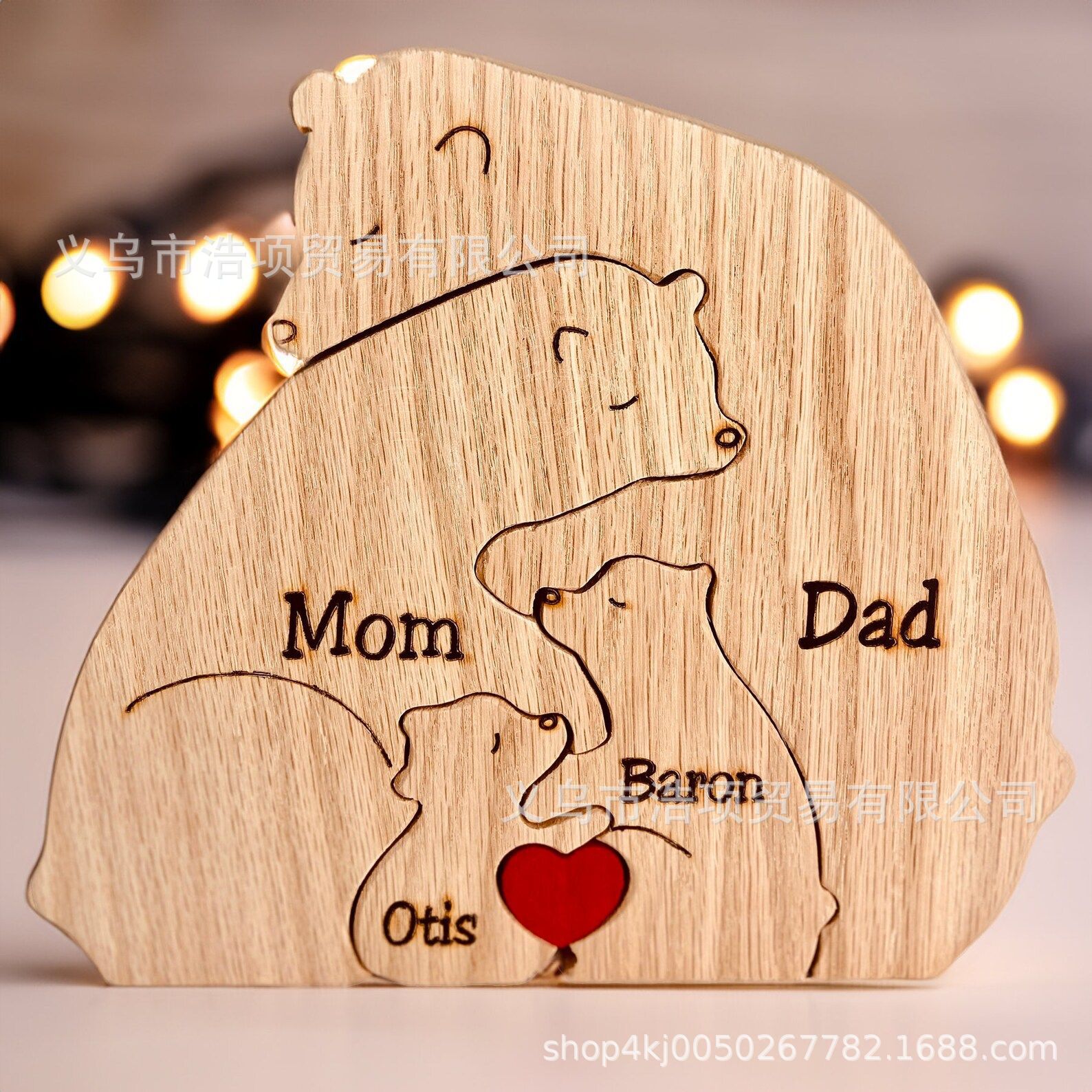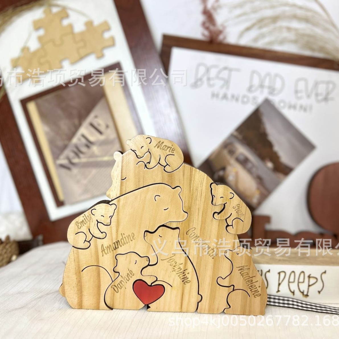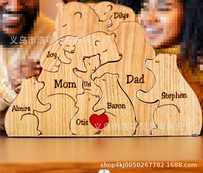Европейская и американская независимая станция Amazon новые персонализированные деревянные украшения для семейных головоломок медведя могут быть настроены DIY информация