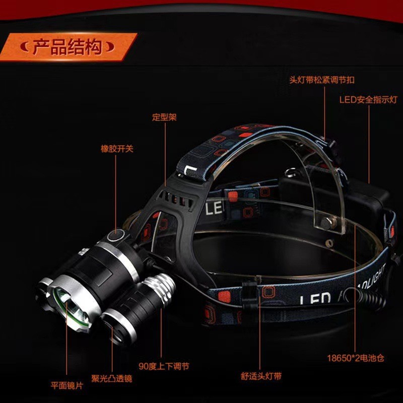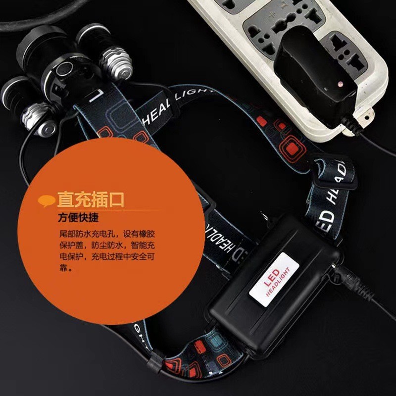 Трансграничный фонарь с тремя головками, сильный свет, перезаряжаемый индукционный фонарь для ночной рыбалки, дальний выстрел, супер яркий фонарик для шахтера на голове